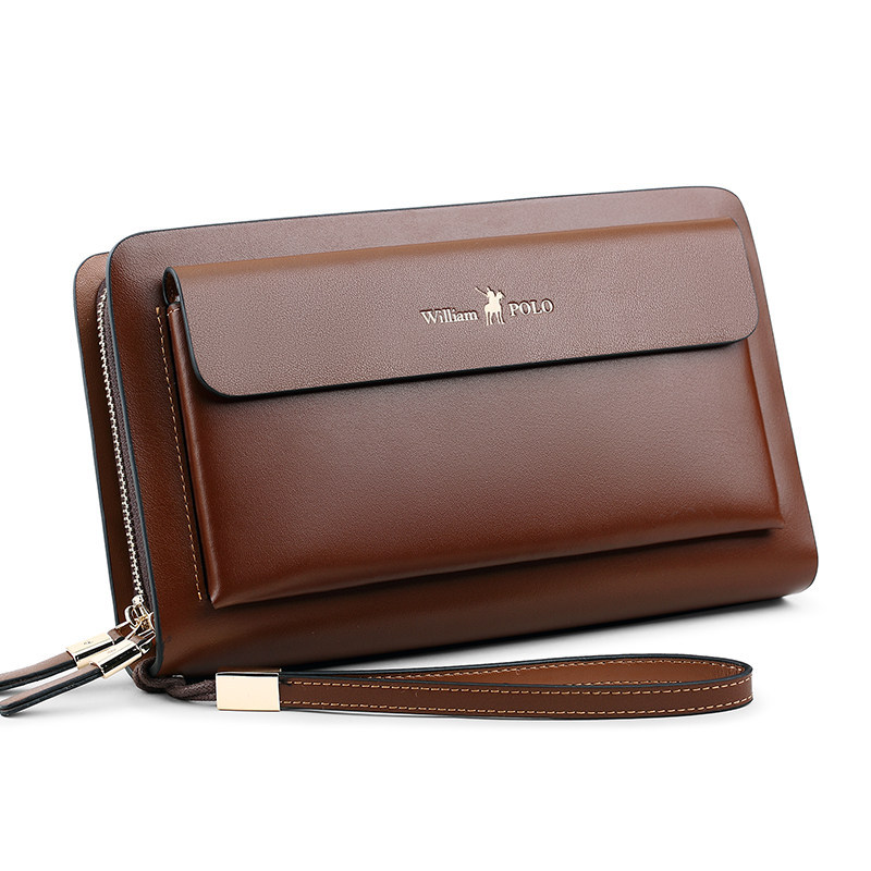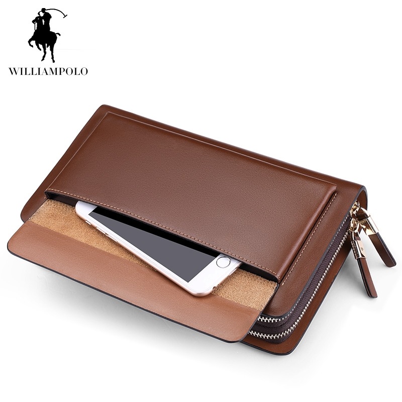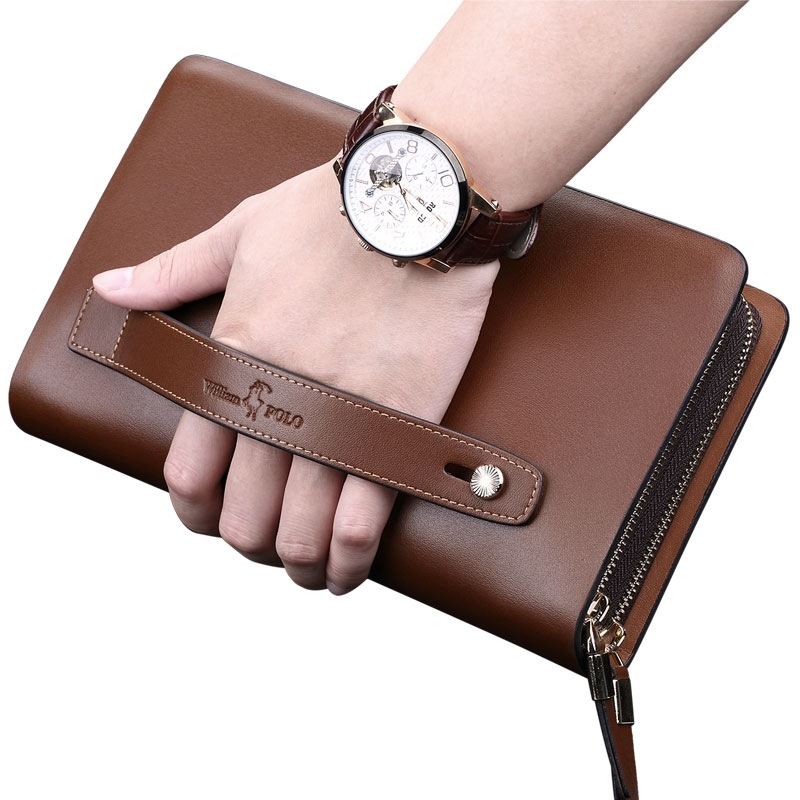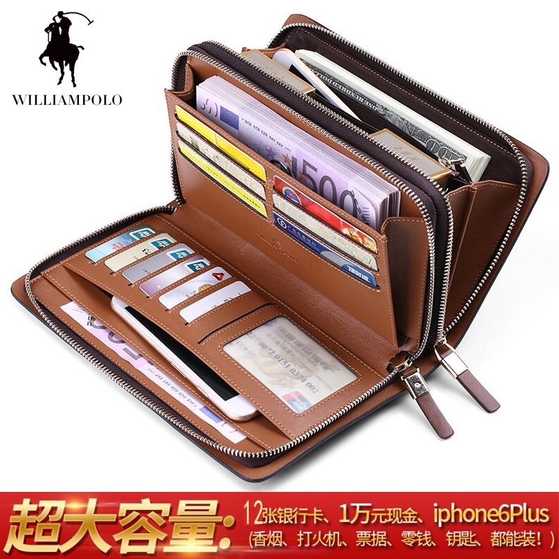 英皇保罗大容量多卡位商务牛皮男士手包手抓拉链男手包手拿钱包男