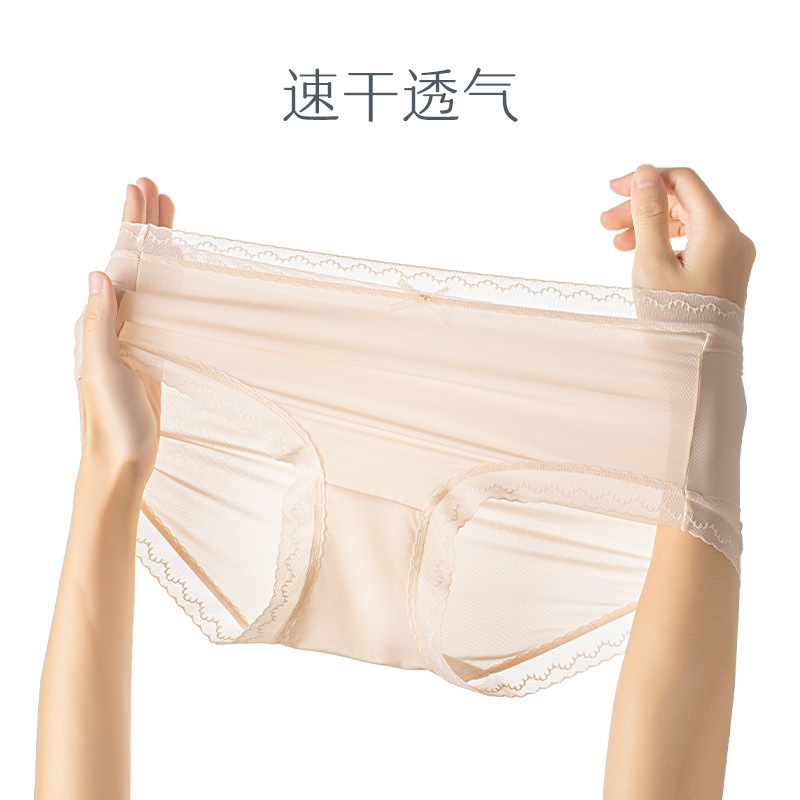 桑蚕丝7a抗菌女士内裤中腰冰丝少女糖果色10D速干轻柔女士三角裤