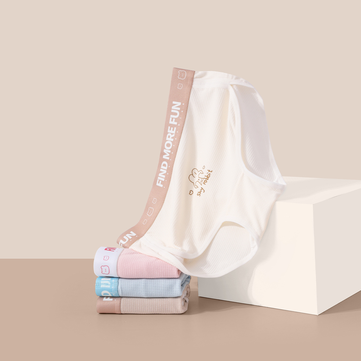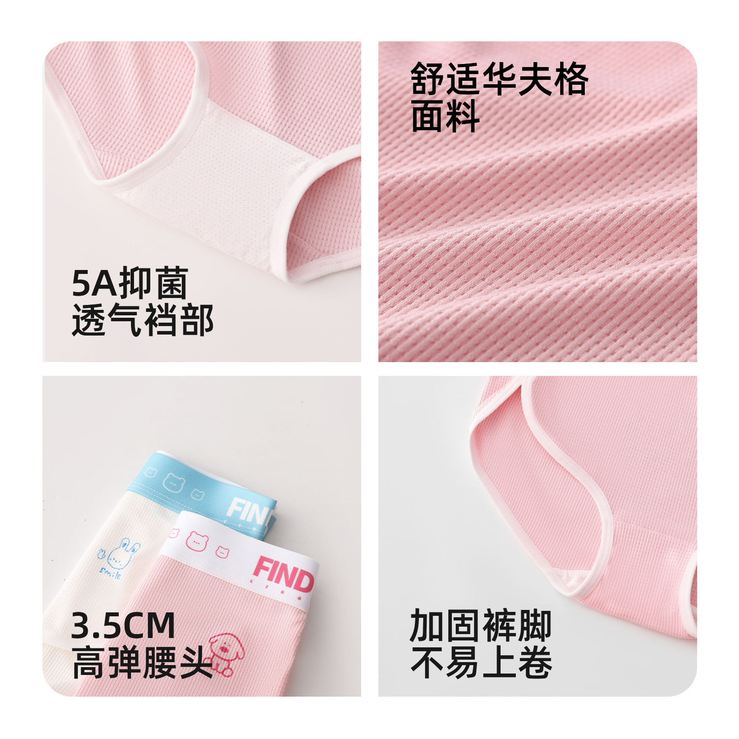 女士纯棉内裤透气抑菌裆女生四季中腰简约少女心华夫格棉质三角裤