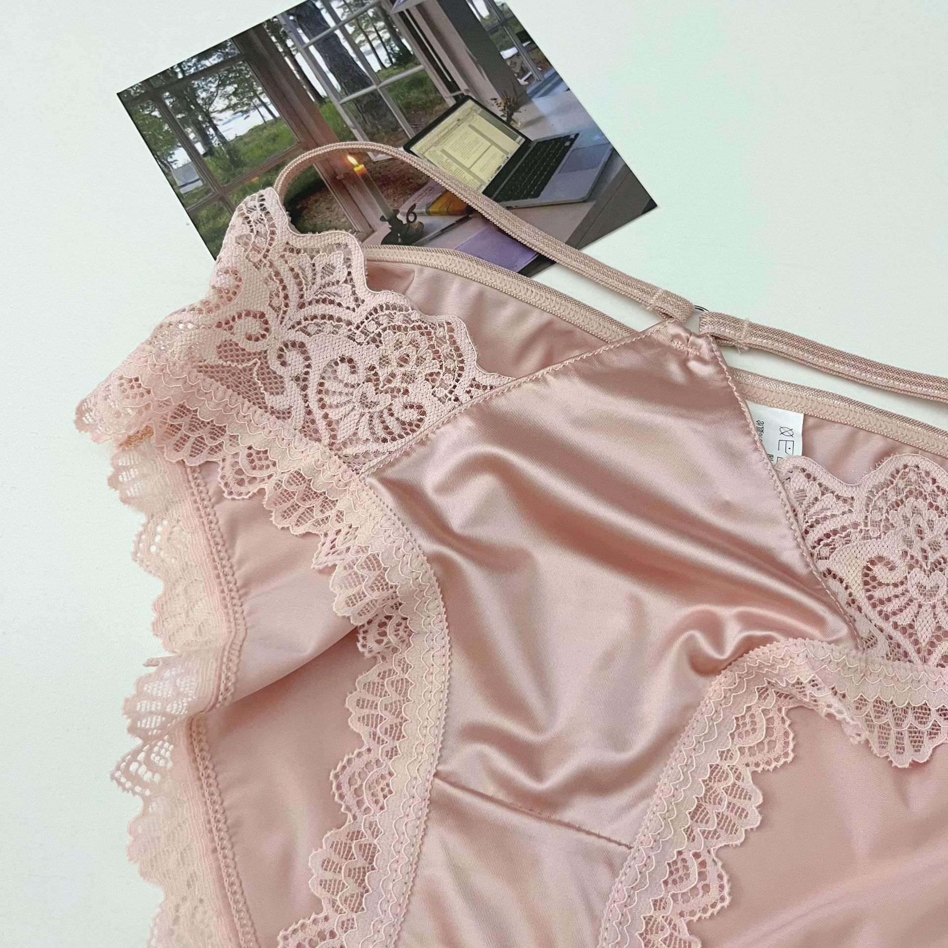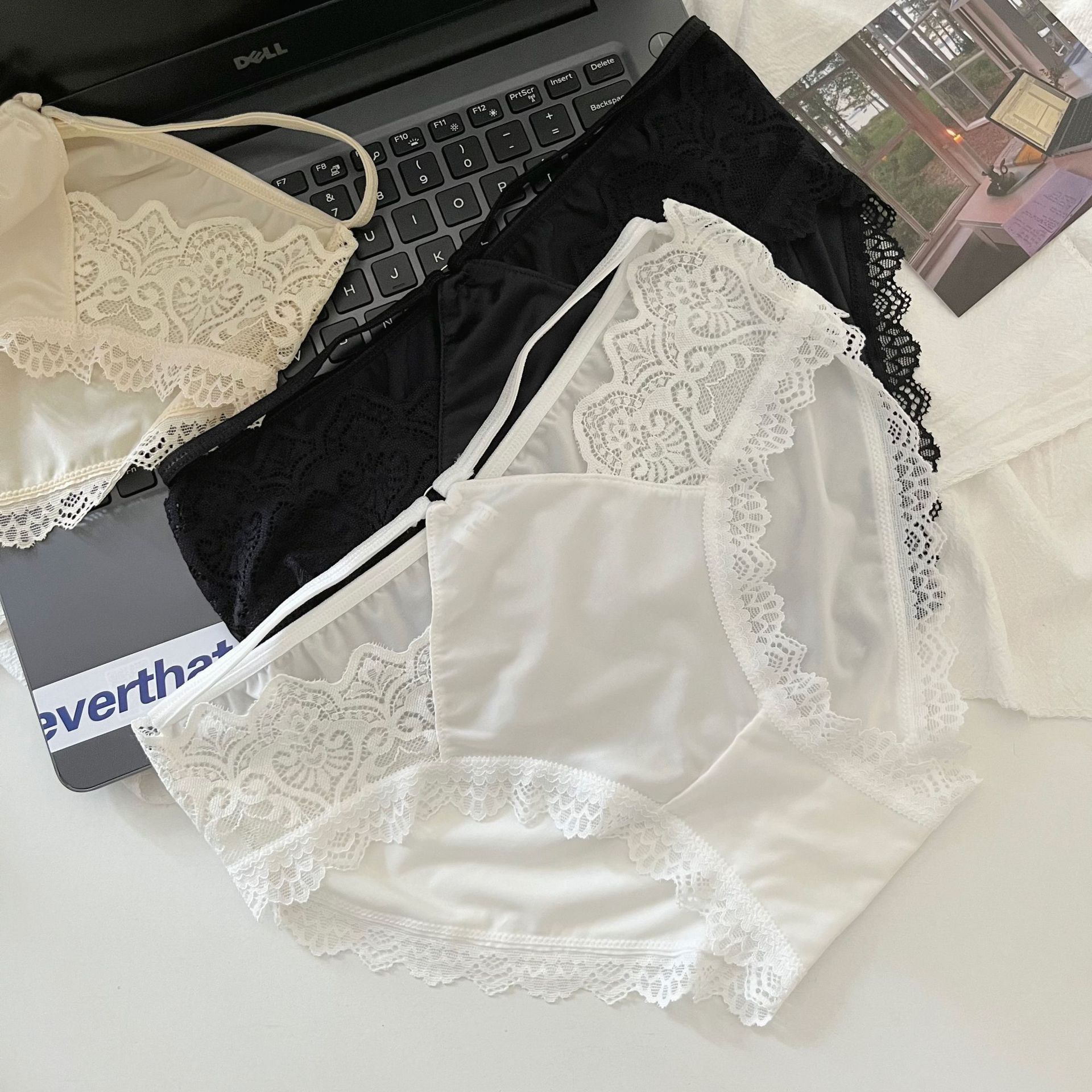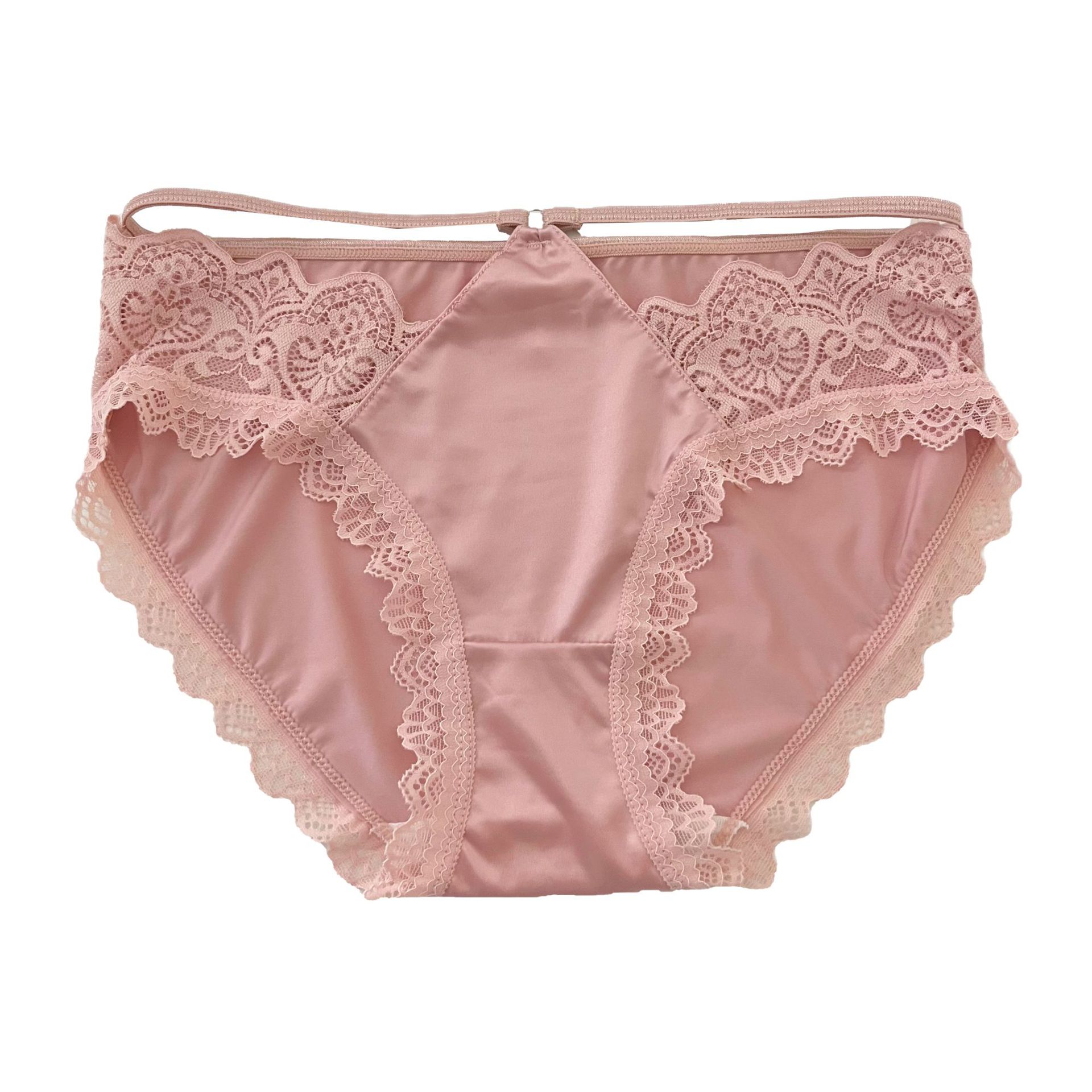 心之月光~少女纯欲风缎面法式内裤女性感蕾丝中腰无痕女士三角裤