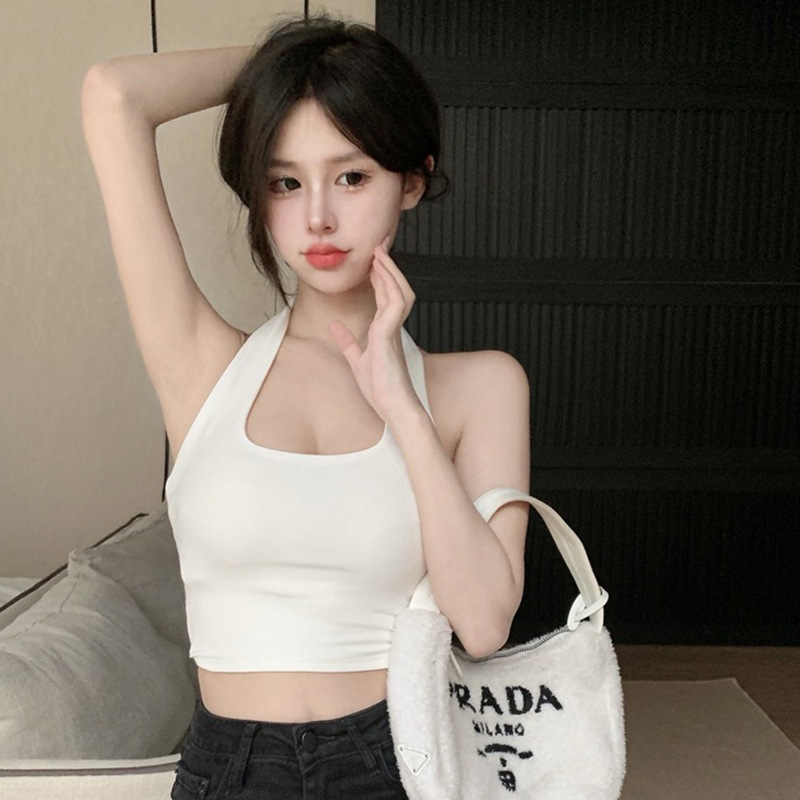 官图实价 紧身内搭打底衫无袖短款辣妹上衣挂脖吊带小背心女夏
