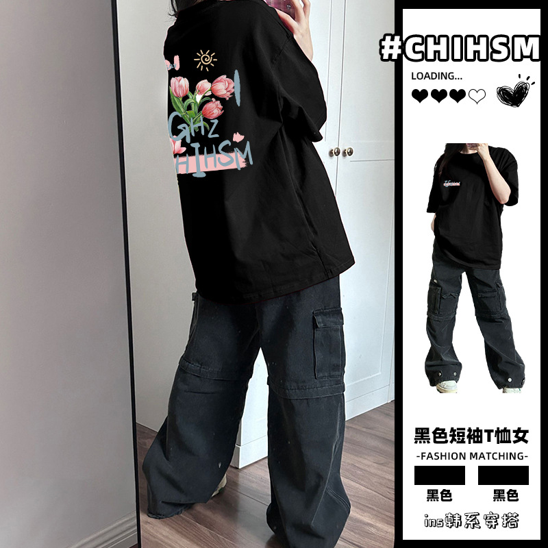 [220g-260g纯棉]夏季新款纯棉短袖t恤女oversize美式宽松小众
