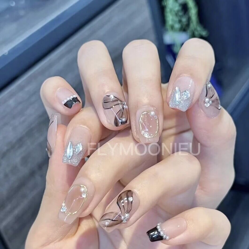 艺禾美甲 金枝琉璃贵气温婉渐变猫眼小法式香槟碎钻纯手工穿戴甲