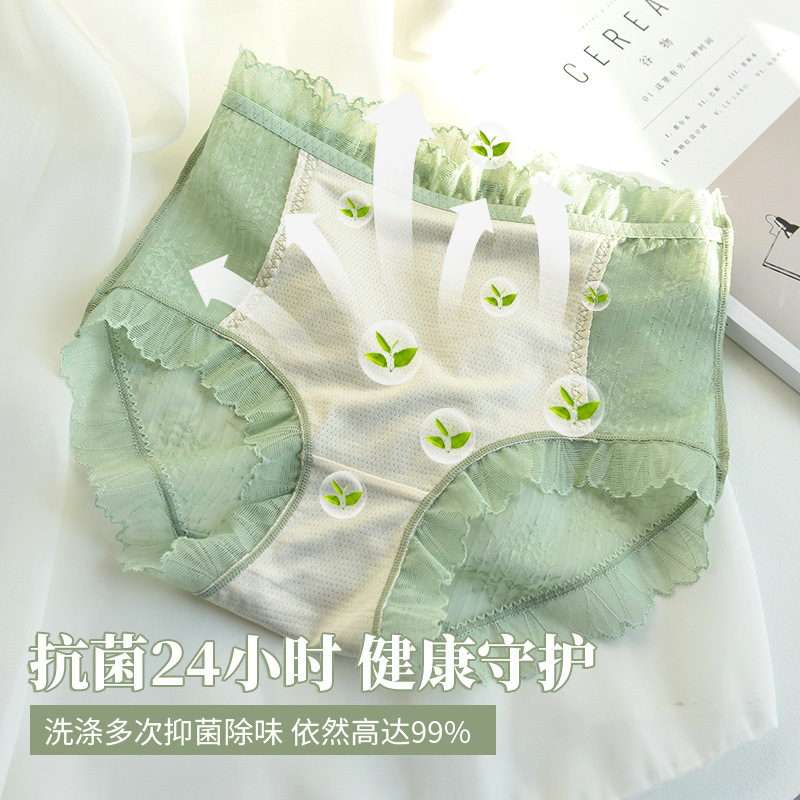 日系新款蕾丝少女内裤性感甜美透气中高腰包臀纯棉裆女士三角裤