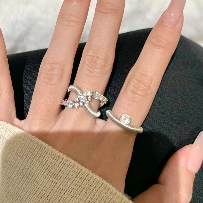 小红书爆款银河细闪点钻戒指意大利重工拉丝银色不规则交叉指环女