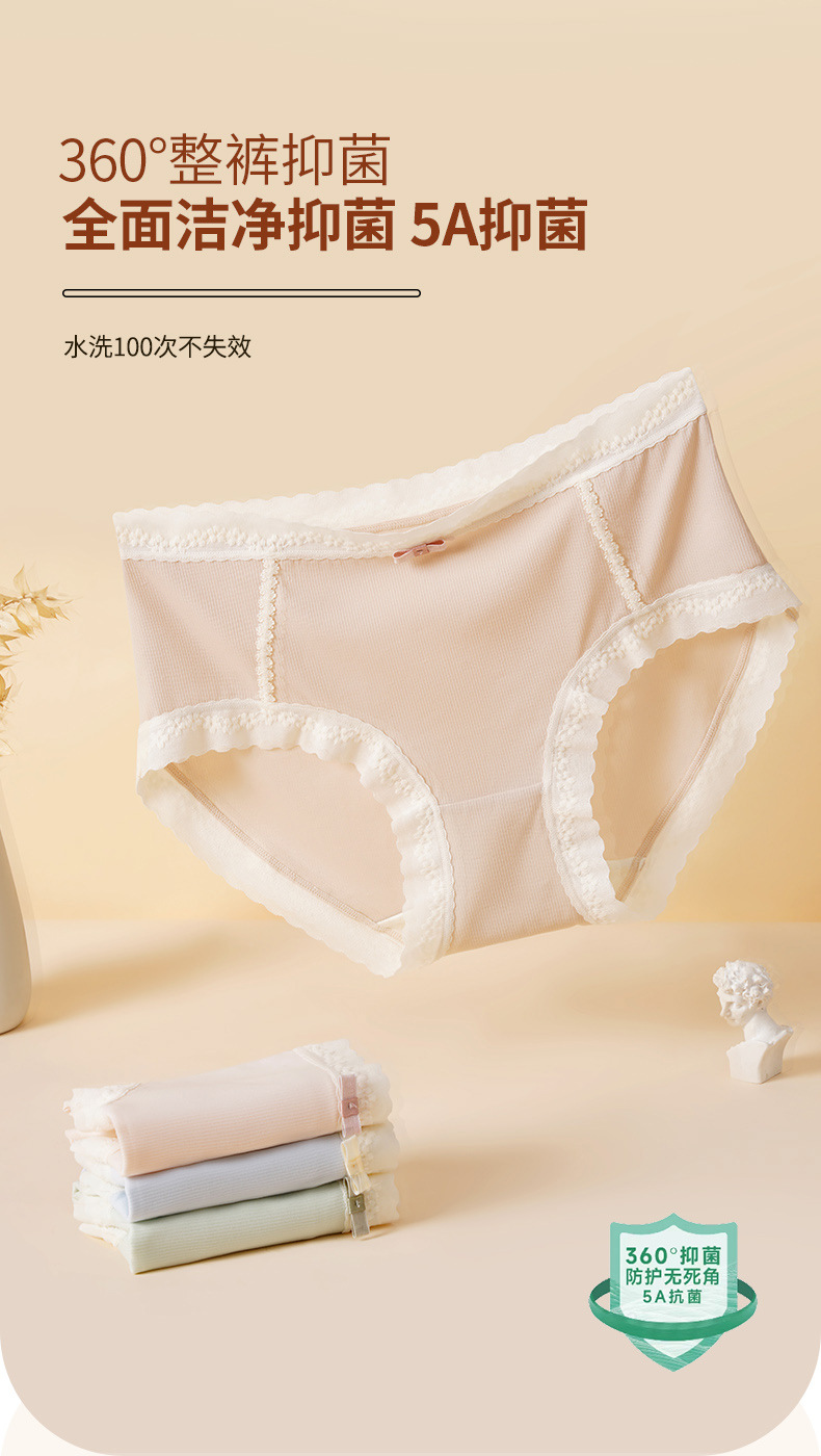 衣彩贝【5A桑蚕丝抑菌裆】无痕内裤女抗菌透气夏季薄中低腰三角裤