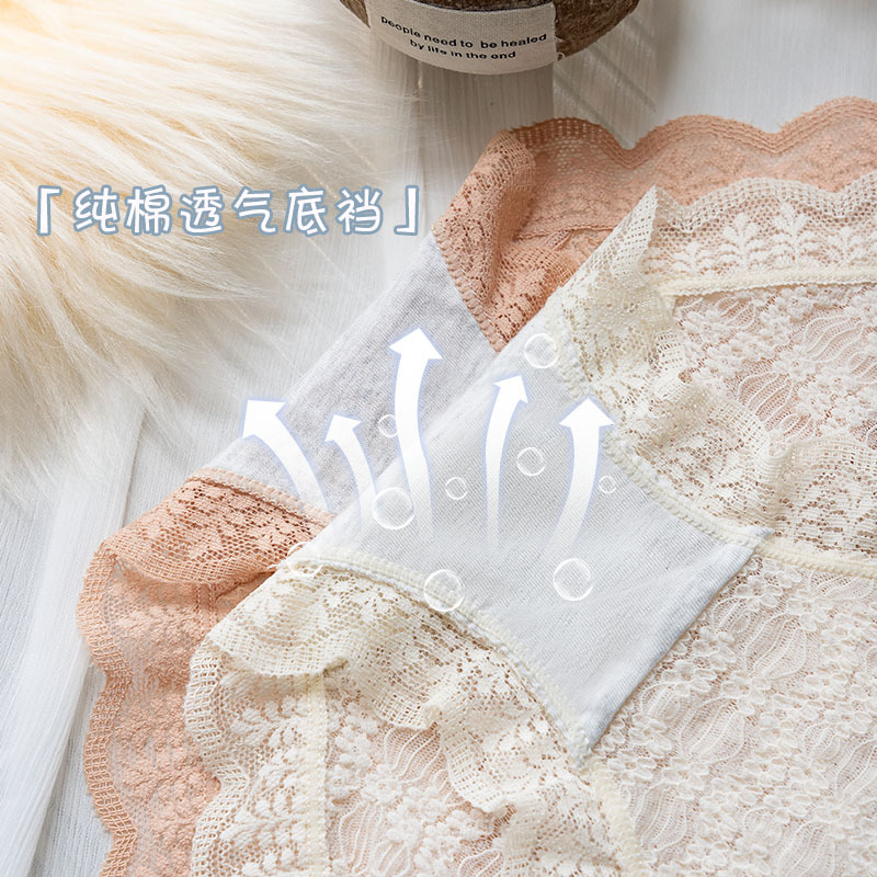 美宅内裤女士纯棉抗菌裆冰丝高腰收腹蕾丝日系少女款三角裤