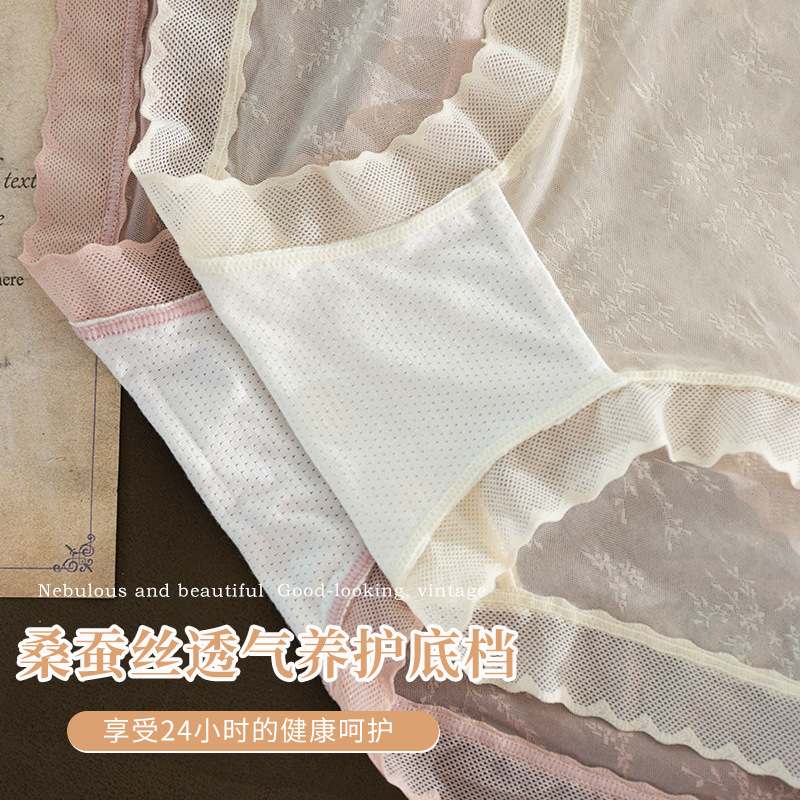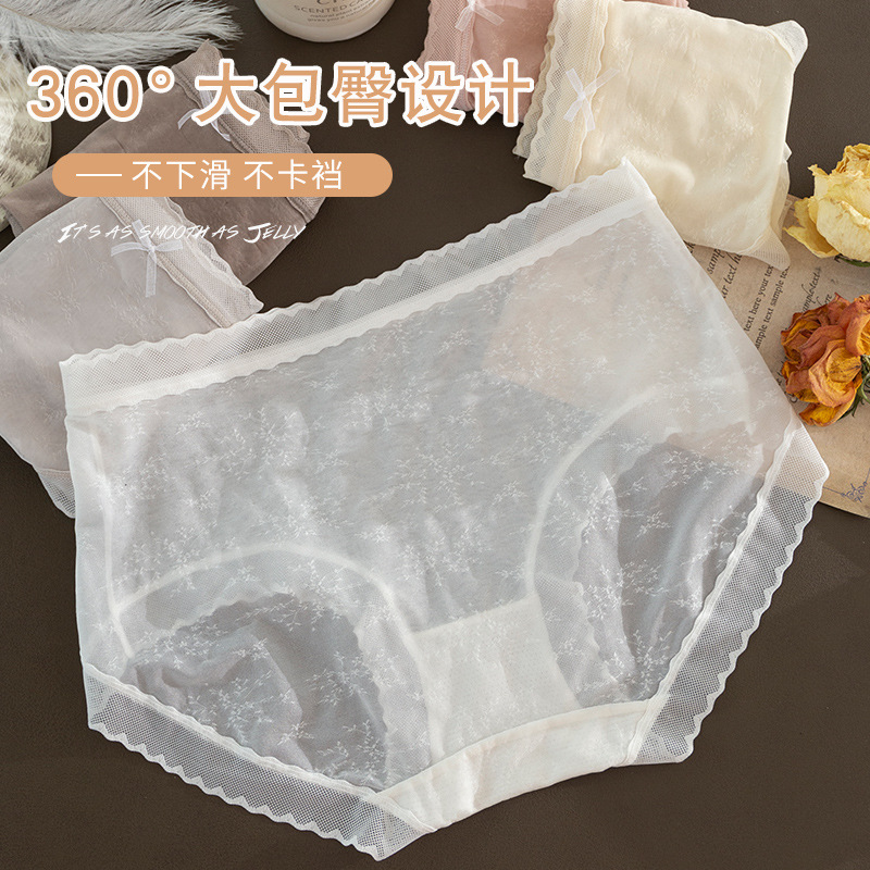 美宅内裤女士蚕丝裆飘飞冰丝无痕裸感0束缚日系少女款三角裤中腰