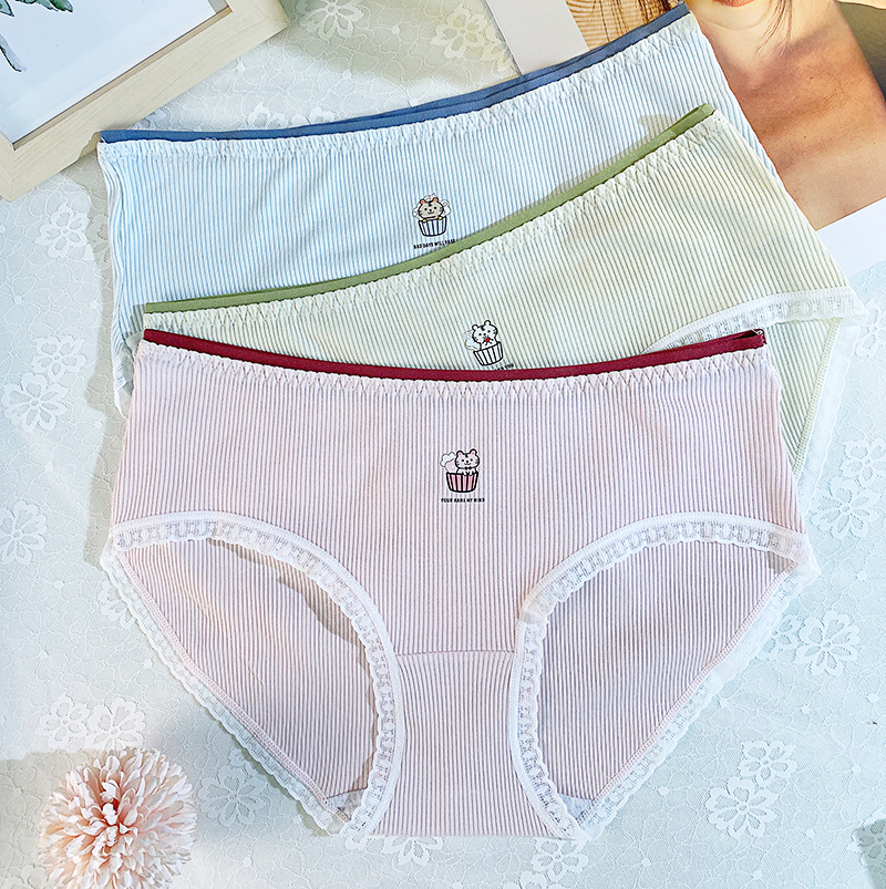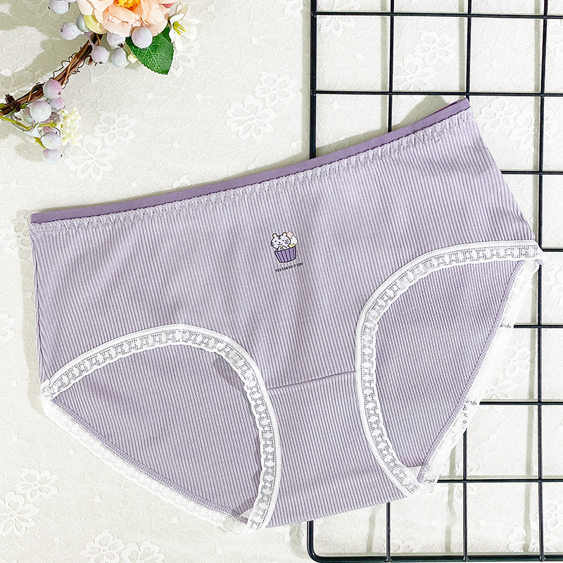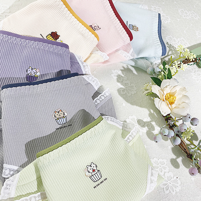 内裤女棉质柔软收肚卡通可爱不卡档高弹少女三角裤发蕾丝边