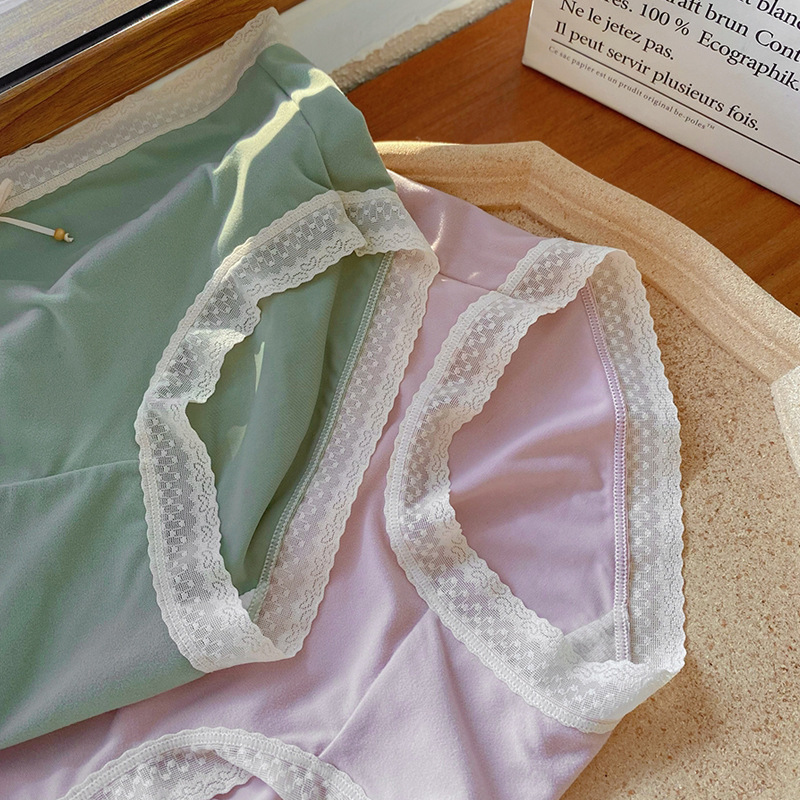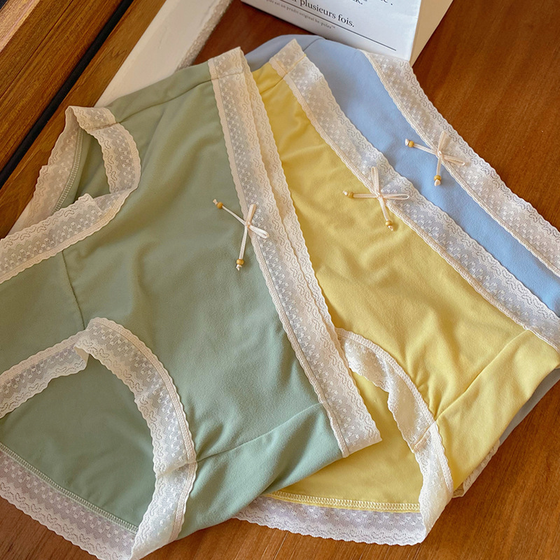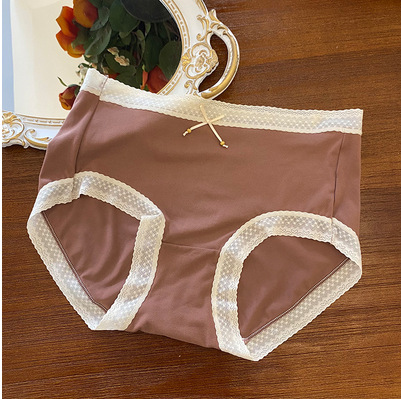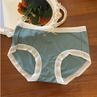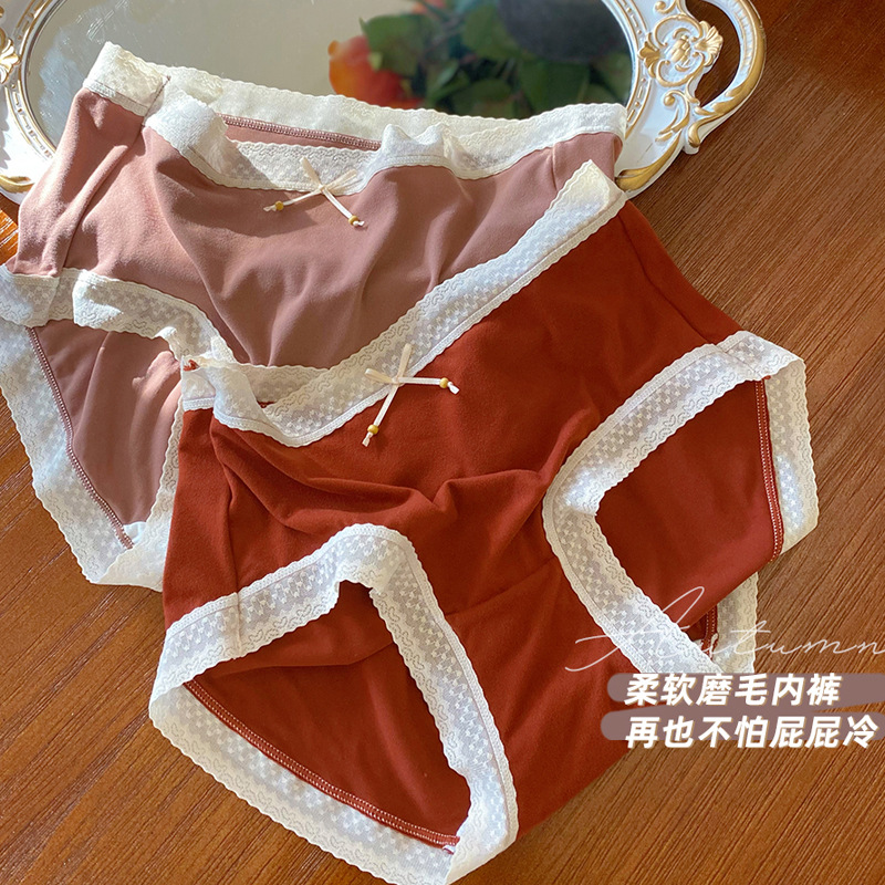 花边蕾丝花边秋冬磨毛温暖舒适中腰纯棉裆少女内裤女