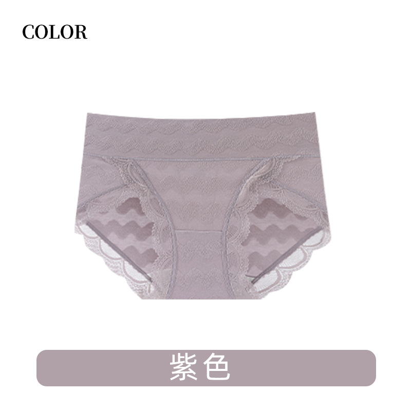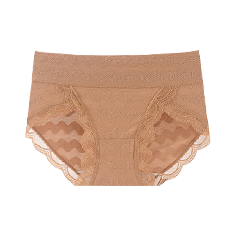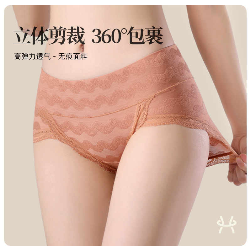 中高腰波纹提花蕾丝内裤高弹无痕款女式三角内裤