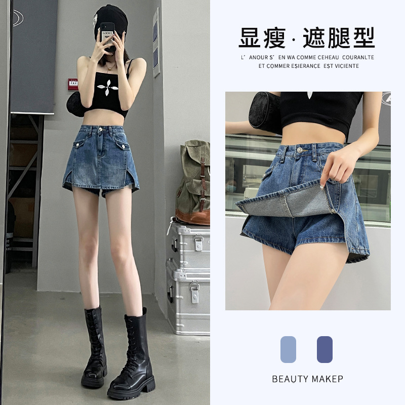 开叉牛仔短裤女裤裙夏季薄款新款潮高腰辣妹小个子a字短裙子