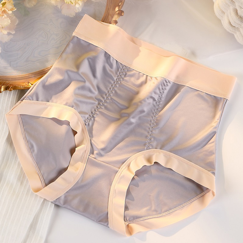 大码200斤高级内裤女冰丝缎面绸缎高腰收腹提臀无痕抗菌女士内裤