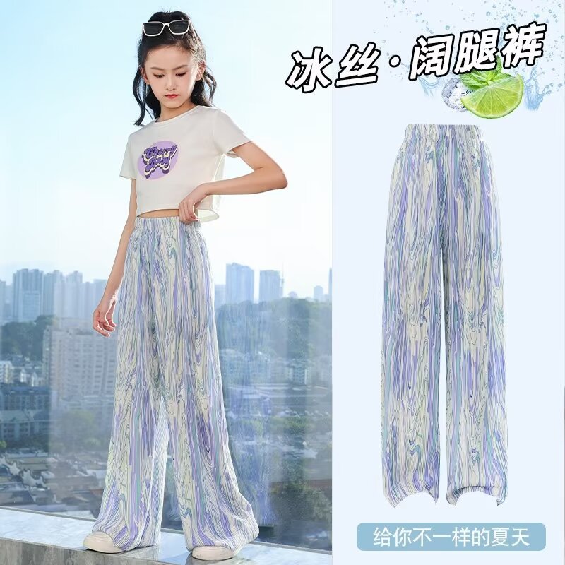 女童裤子夏装新款夏季扎染冰丝防蚊裤大童儿童休闲阔腿裤薄款