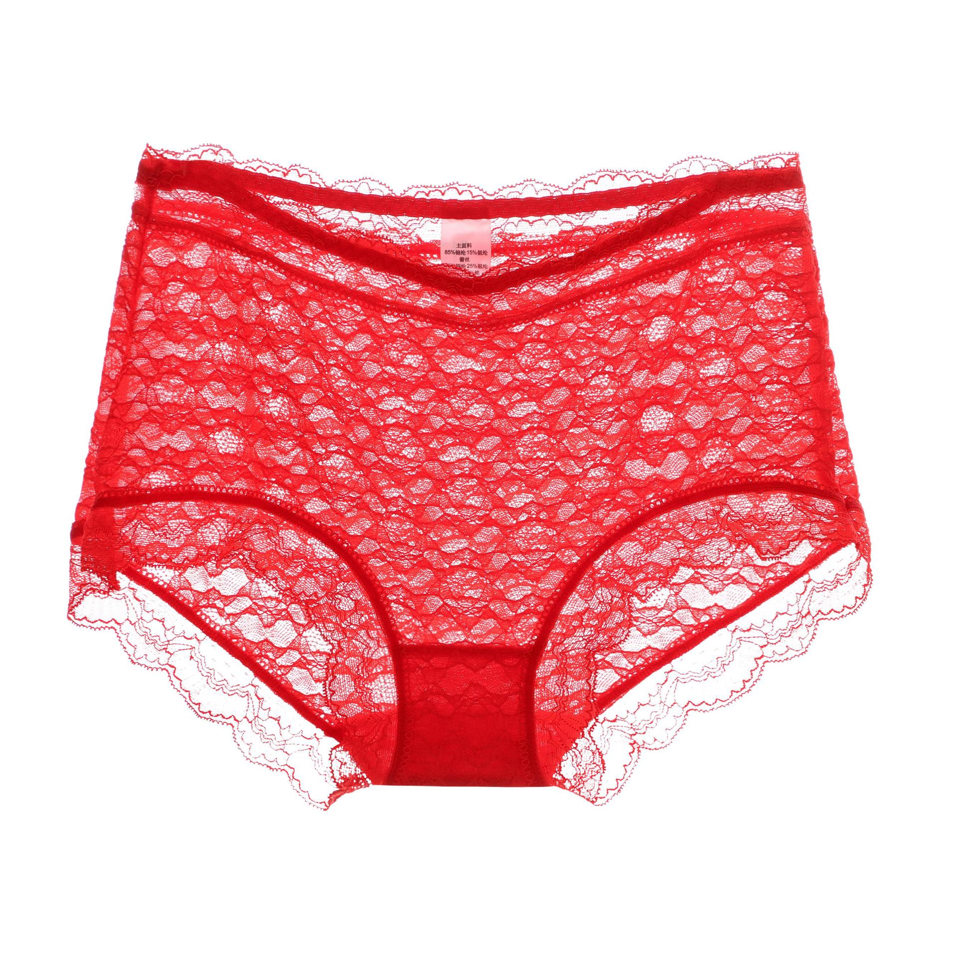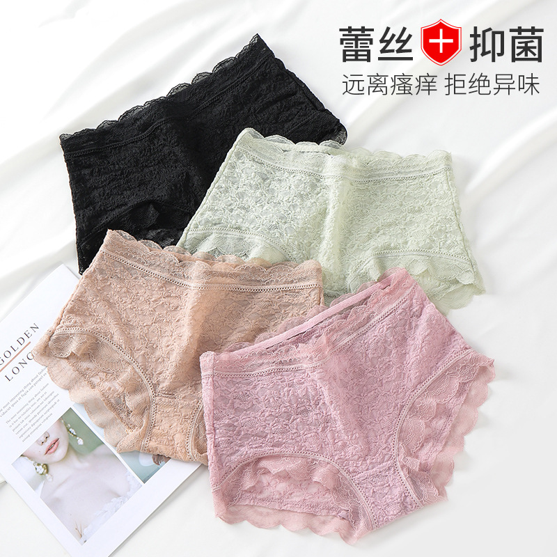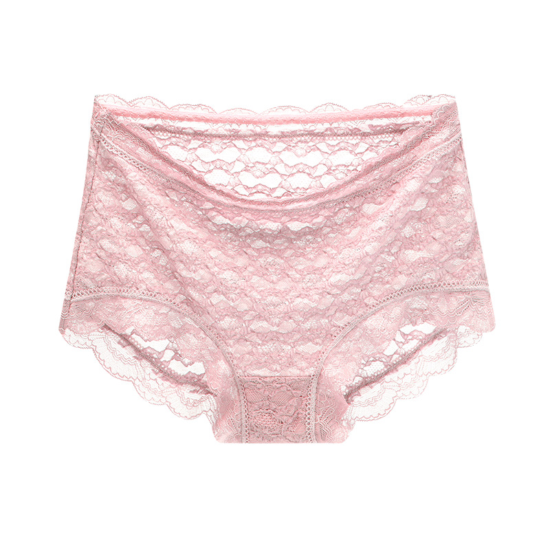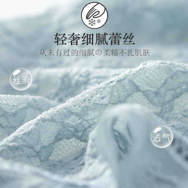 夏季新品泡泡蕾丝内裤女性感透明纯棉底裆中腰蕾丝边女士内裤