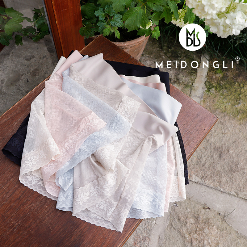 夏季清凉薄透丝滑蕾丝高弹宽腰蚕丝内里女士二合一内裤安全裤