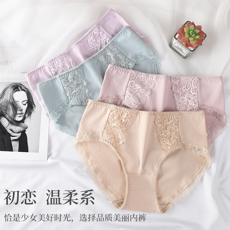 纯色女士纯棉内裤女简约中腰透气舒适无痕内裤全棉女生三角裤
