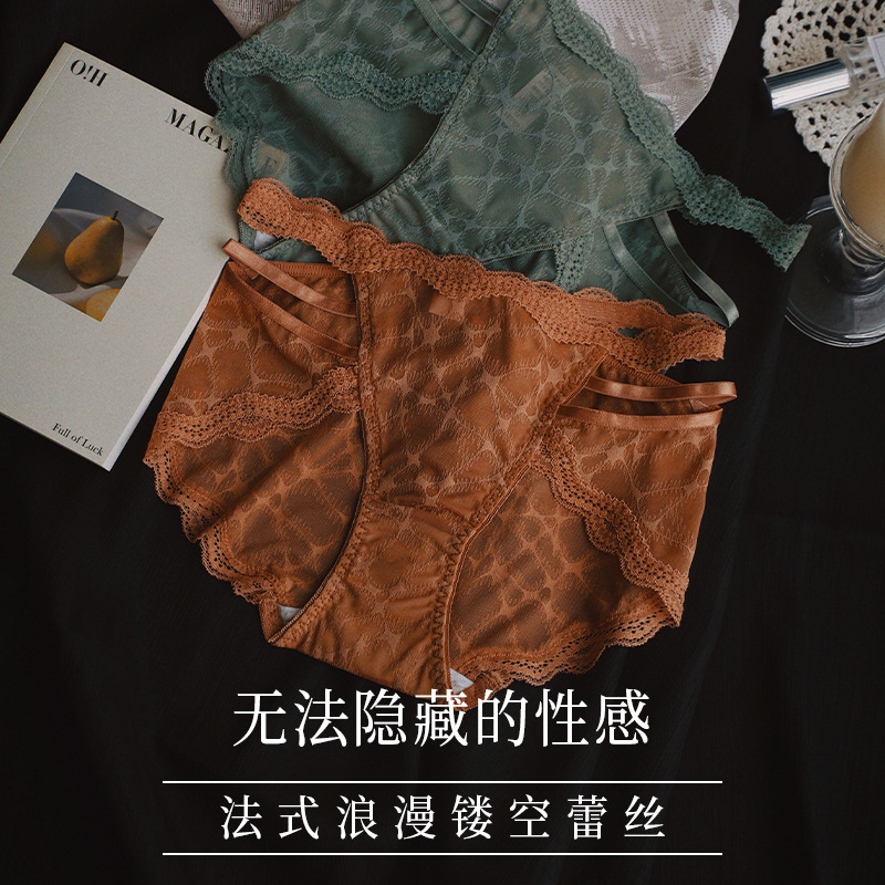 女士内裤女蕾丝法式性感镂空高开叉少女三角裤头