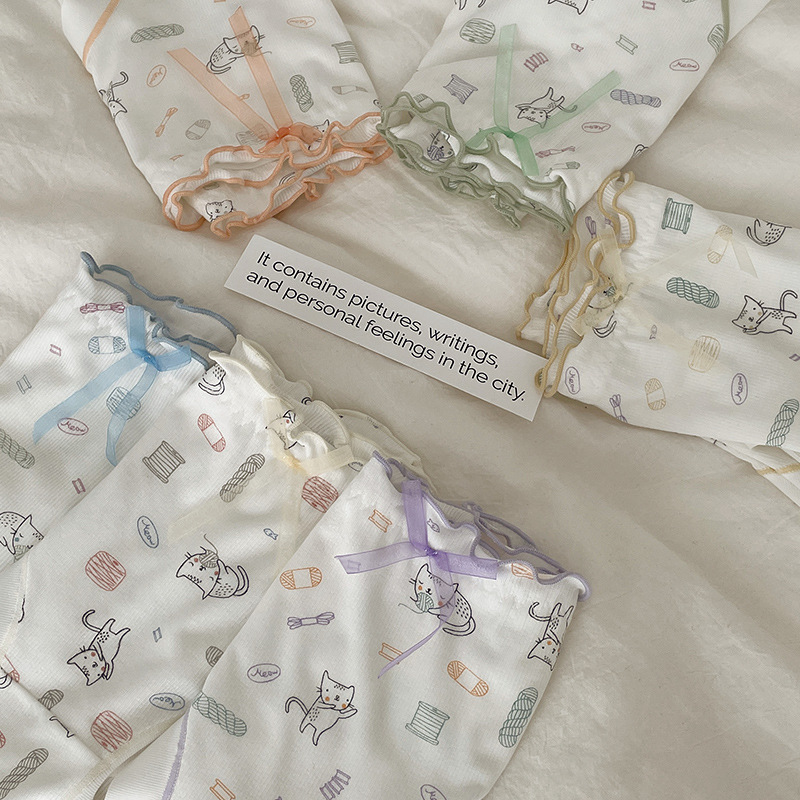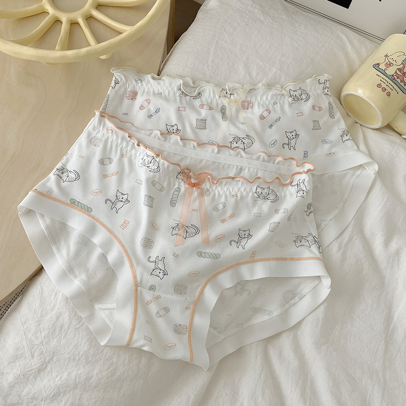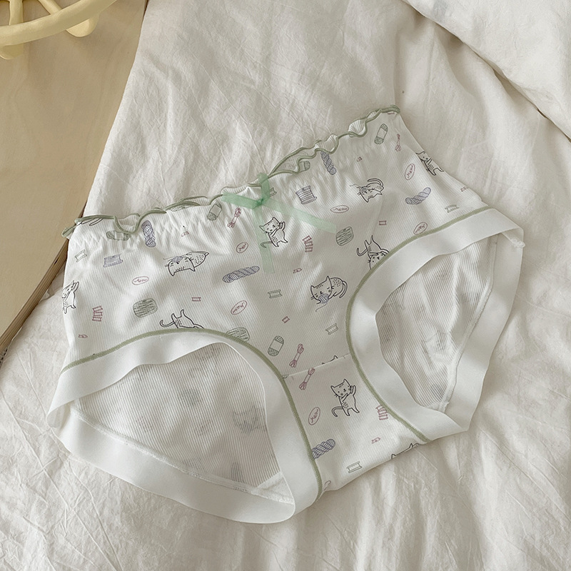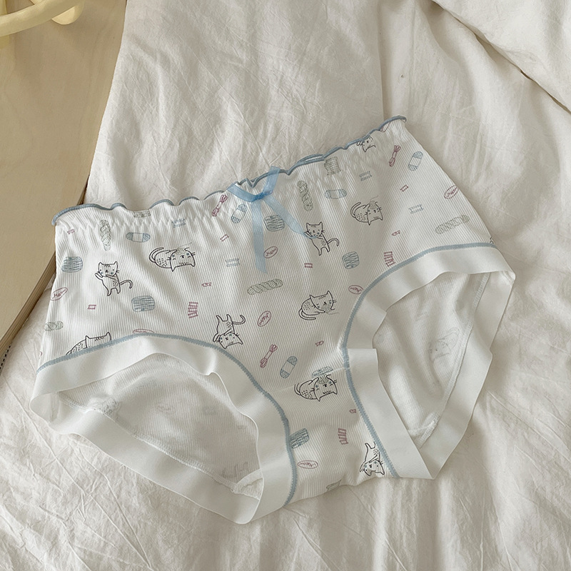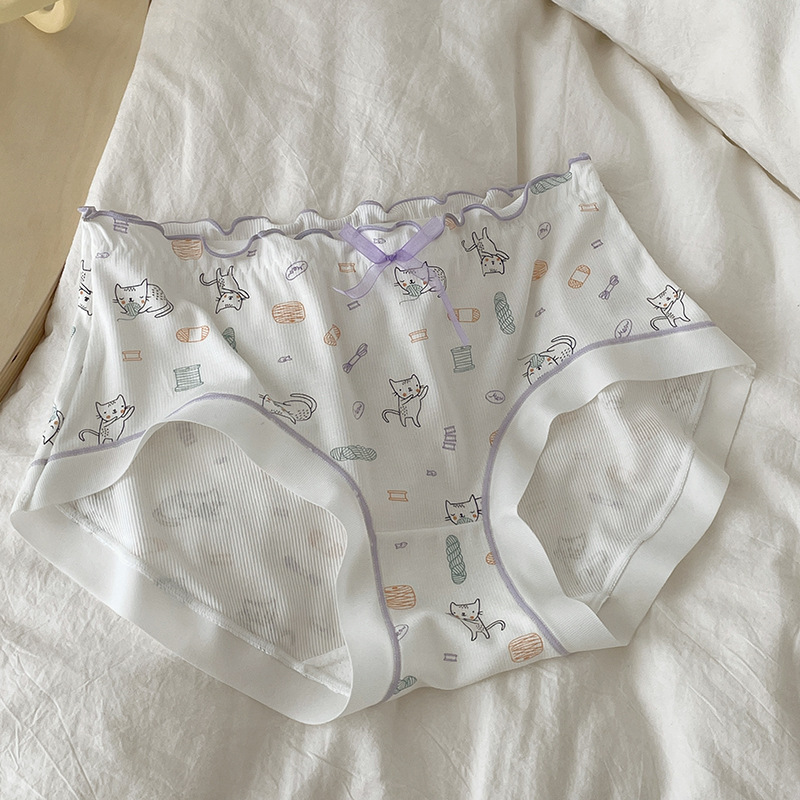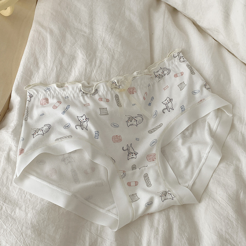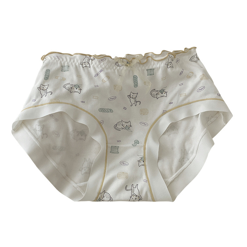 少女内裤螺纹莫代尔裸感可爱卡通印花中腰舒适透气甜美学生三角裤