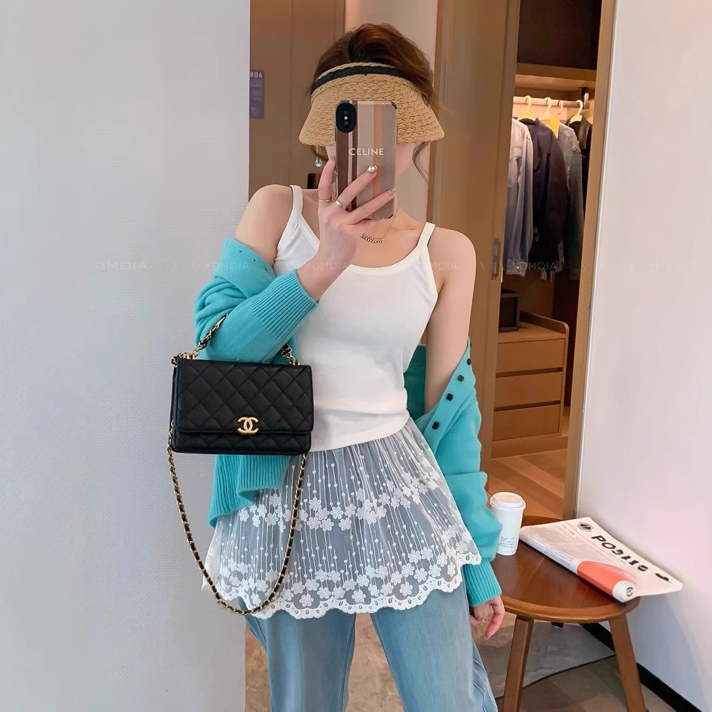 白色蕾丝拼接吊带背心女夏外穿叠穿2025新款修身洋气屁帘无袖上衣