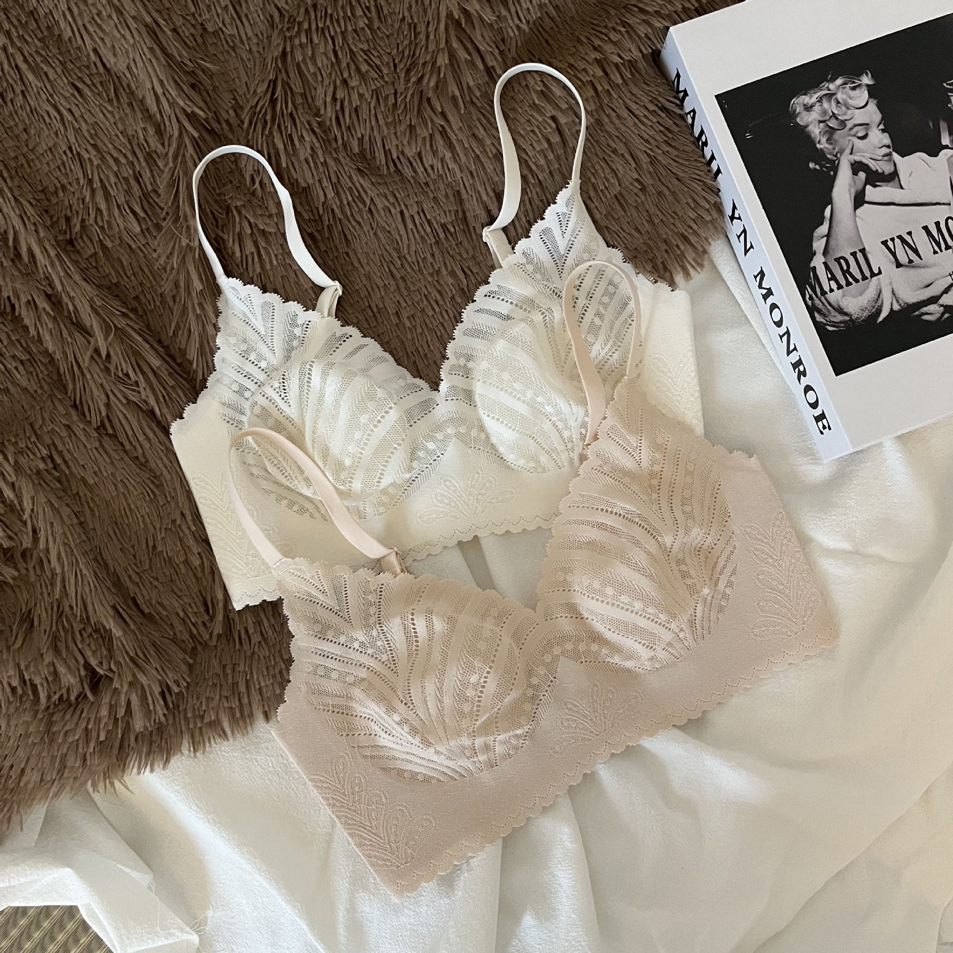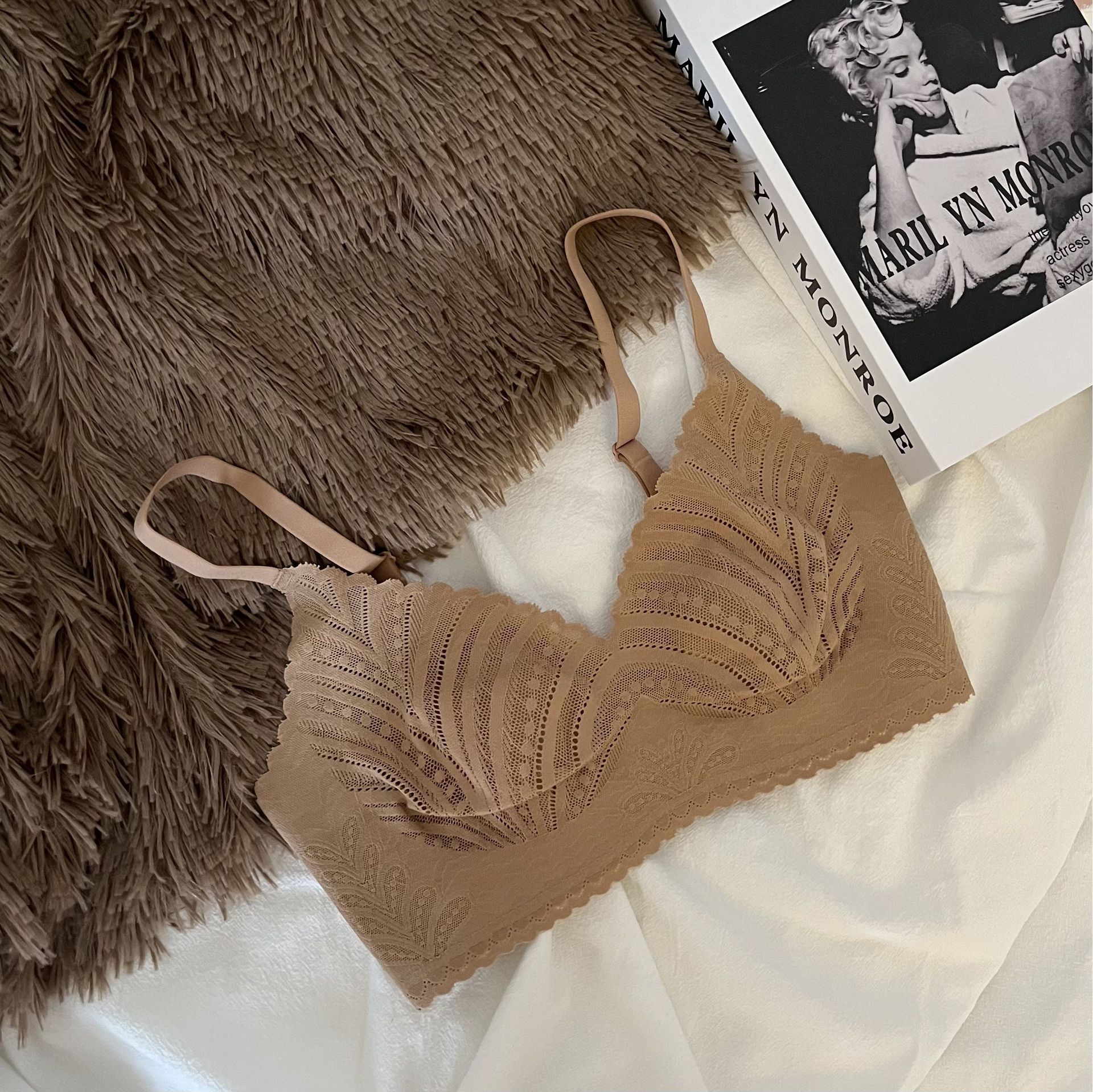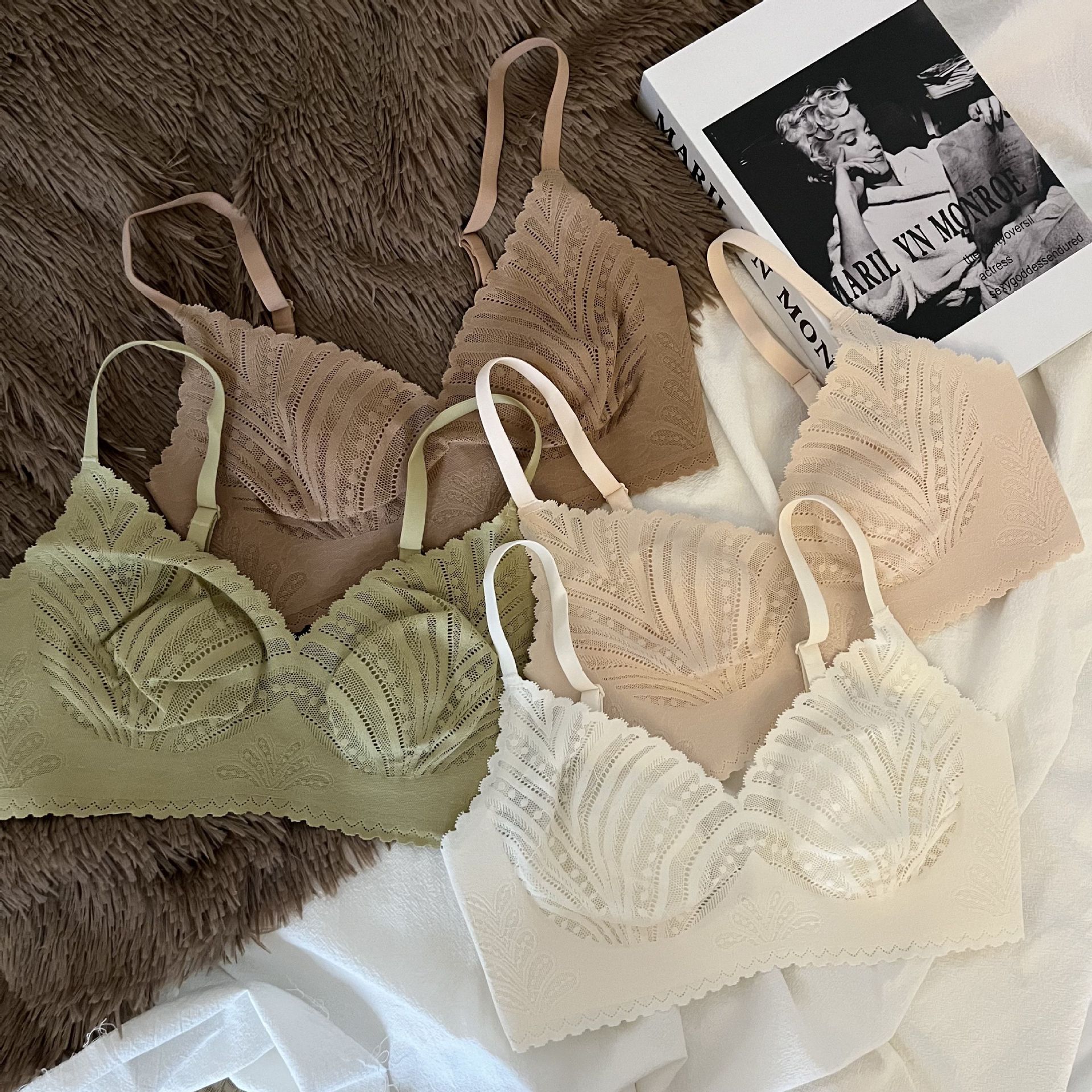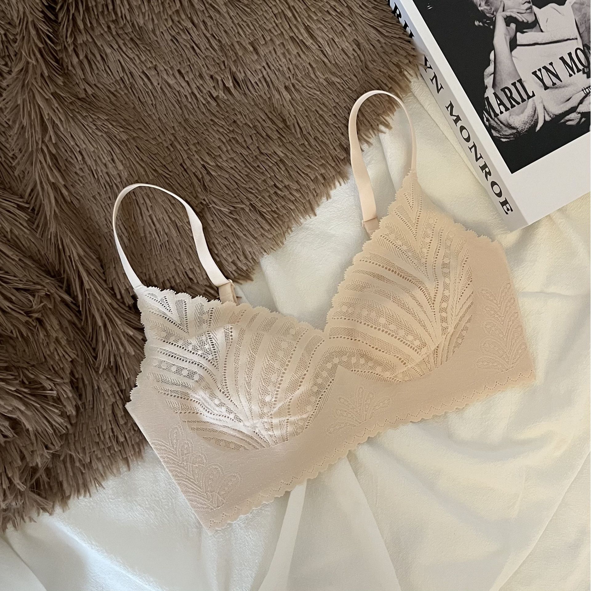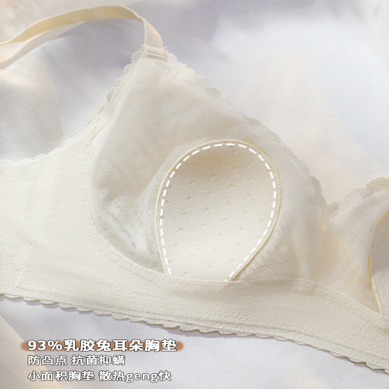 超薄蕾丝兔耳朵无痕内衣女士大胸显小无钢圈文胸夏季透气舒适胸罩