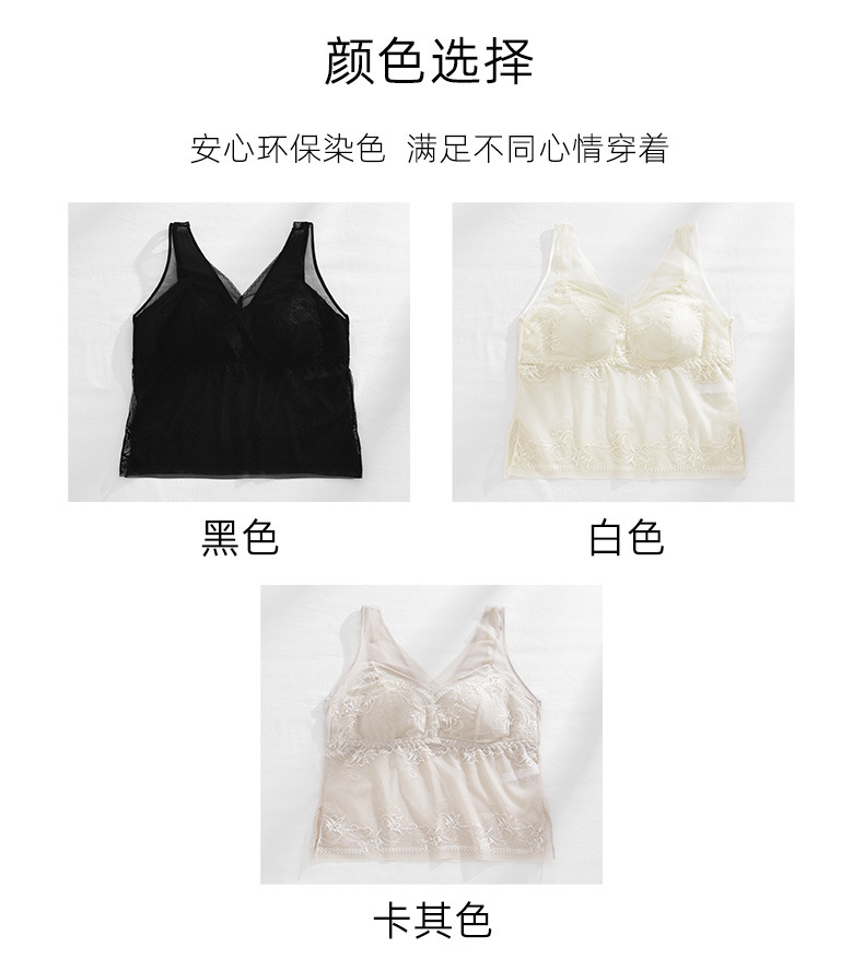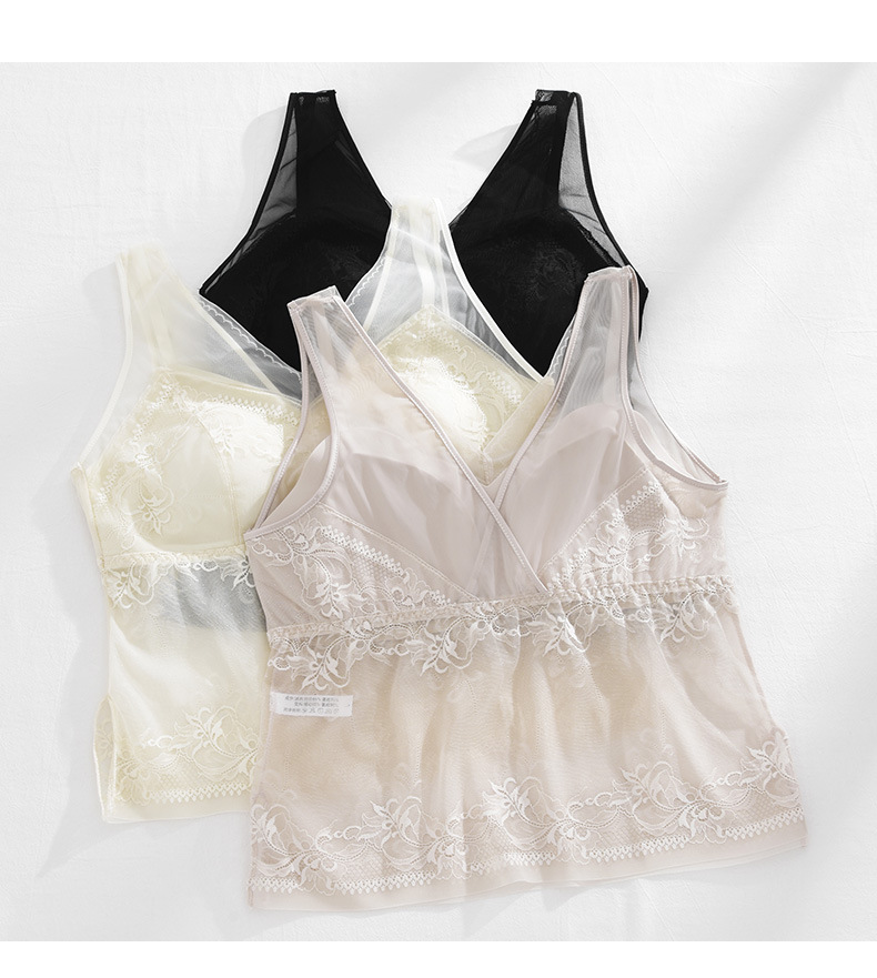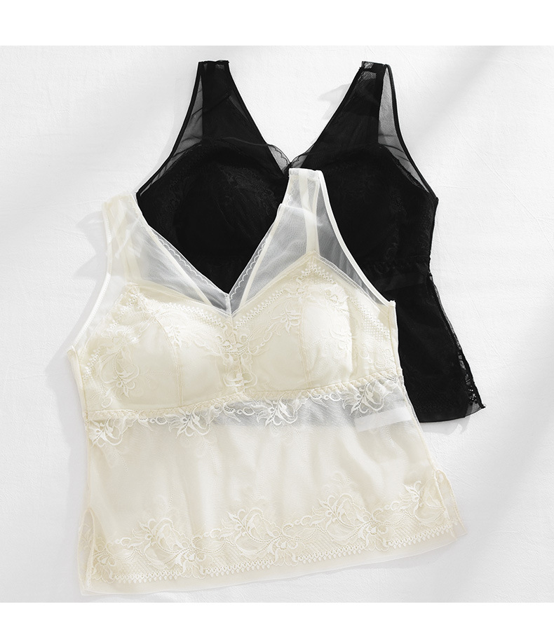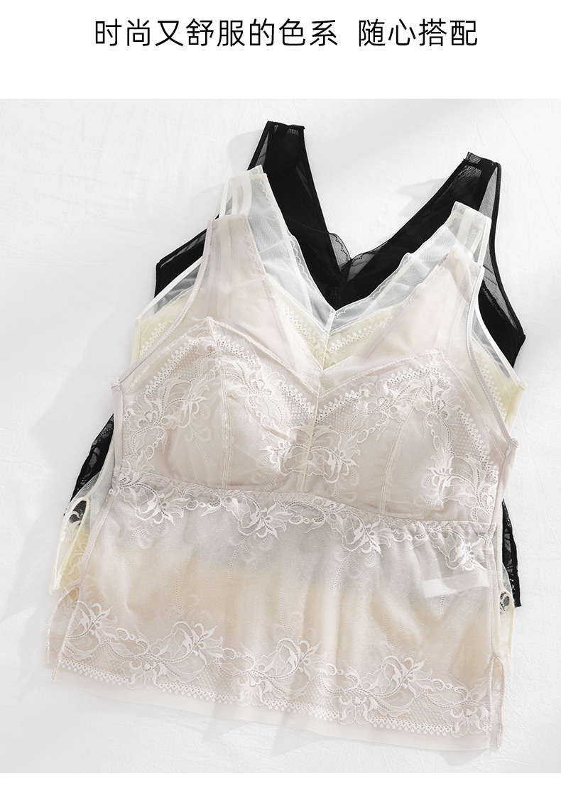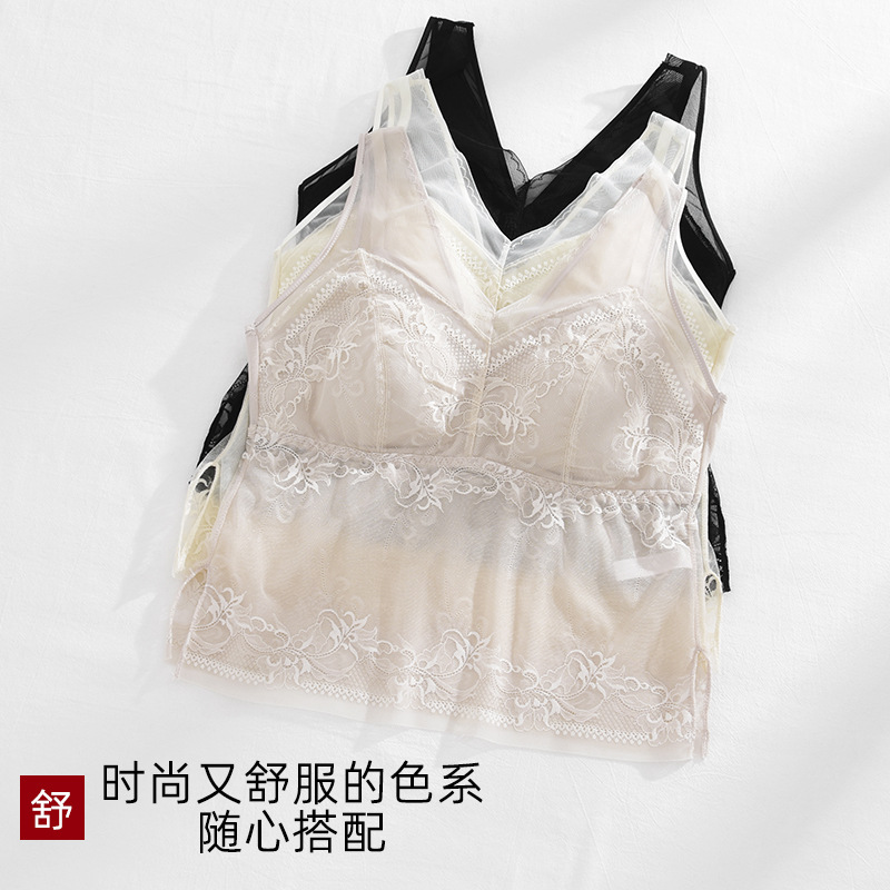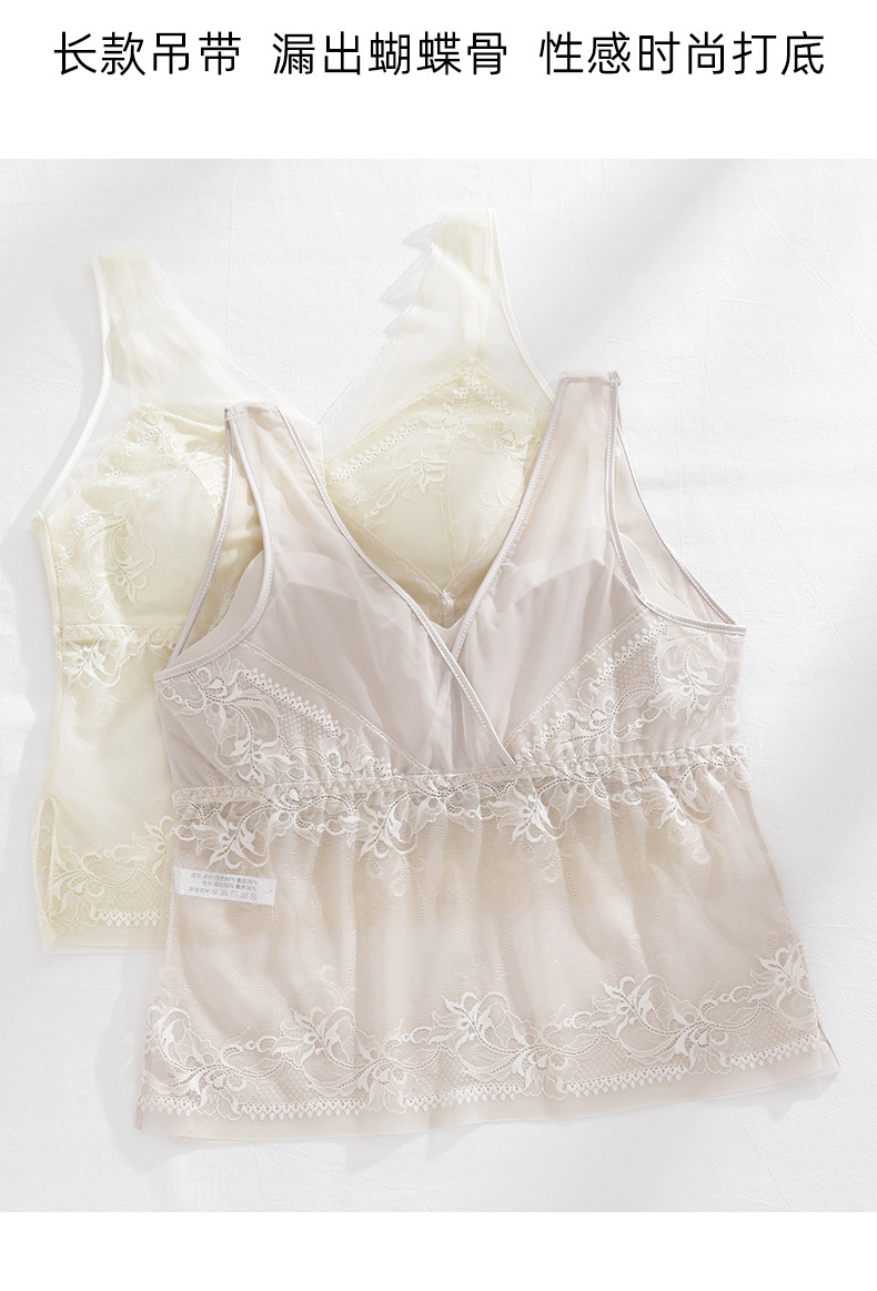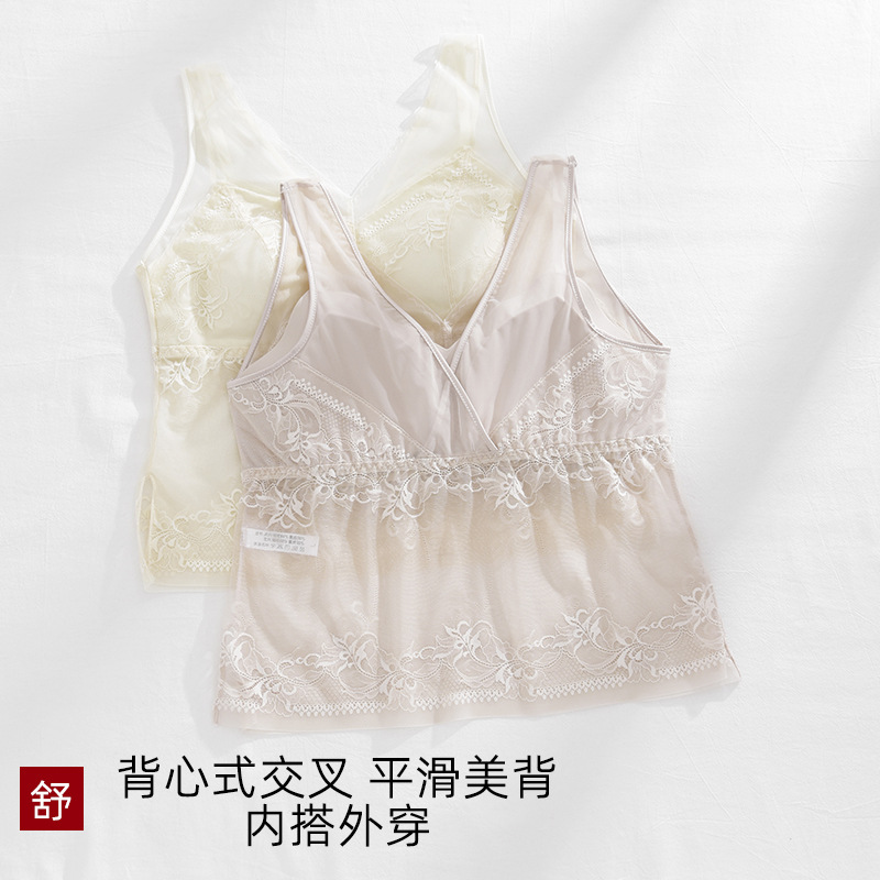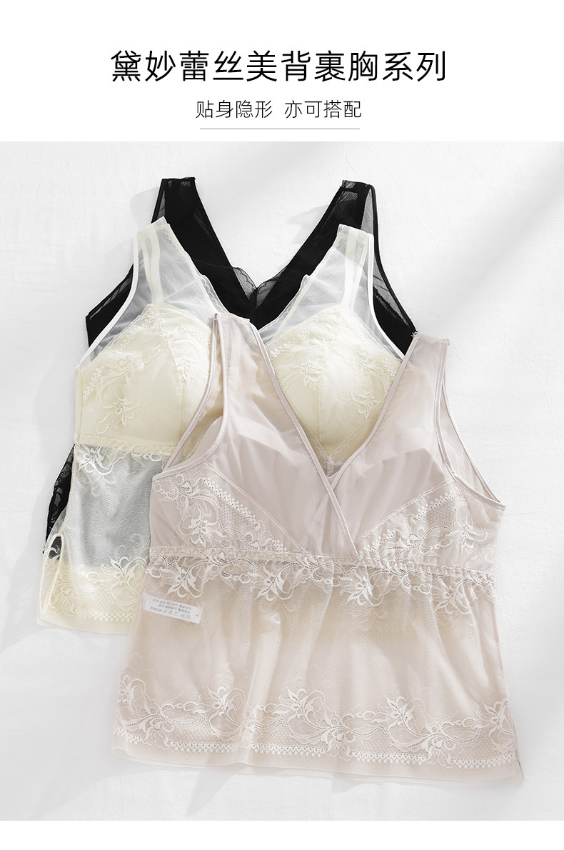 春新款法式蕾丝内衣女士固定一体杯美背吊带胸垫背心内搭打底裹胸