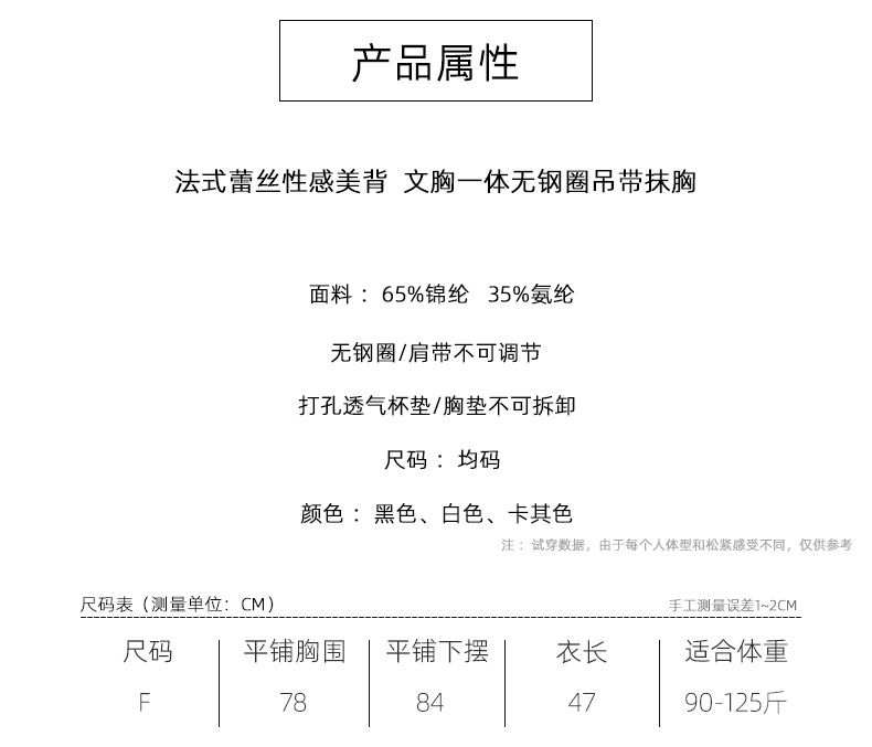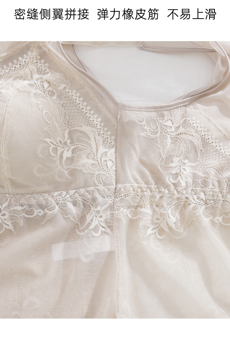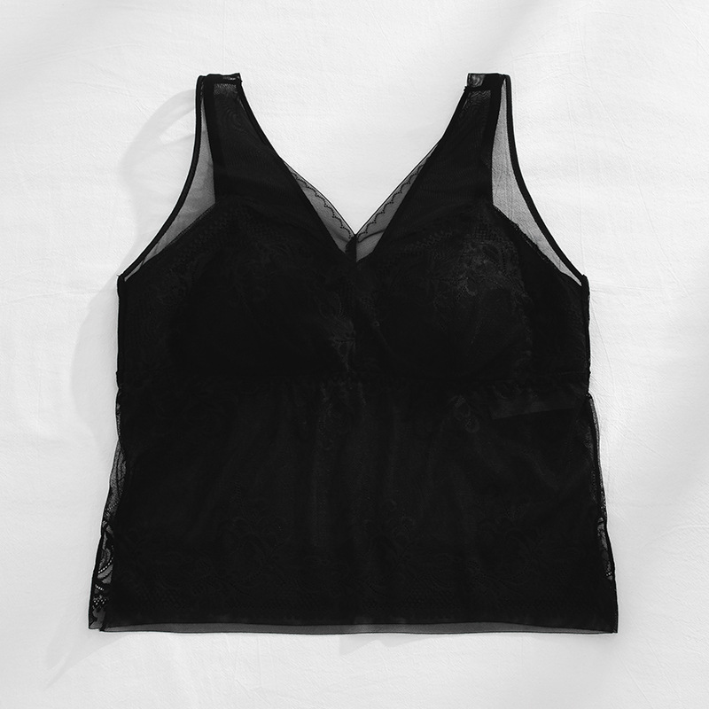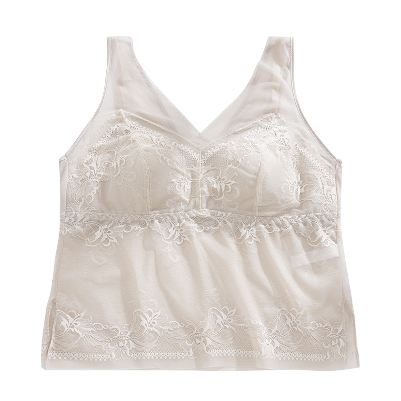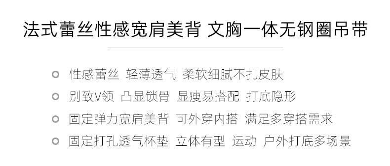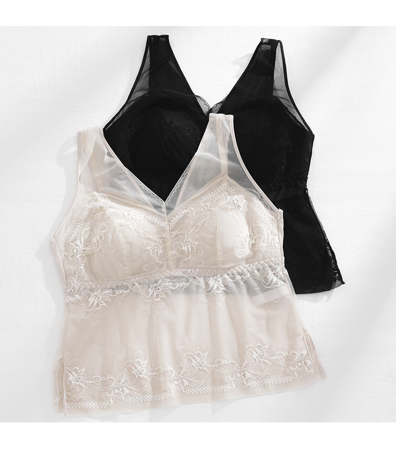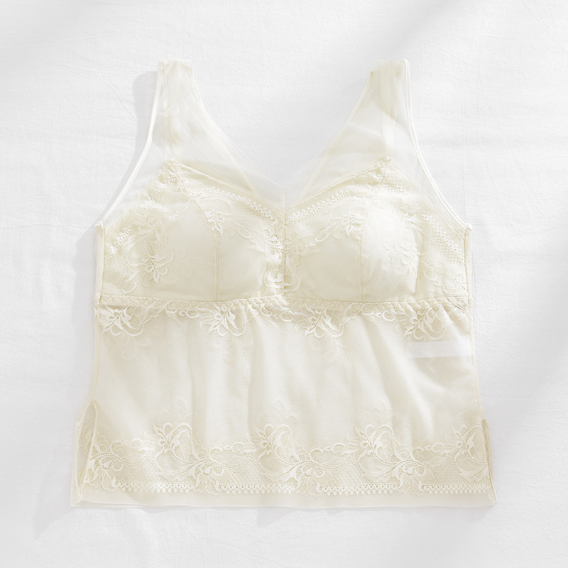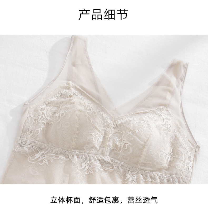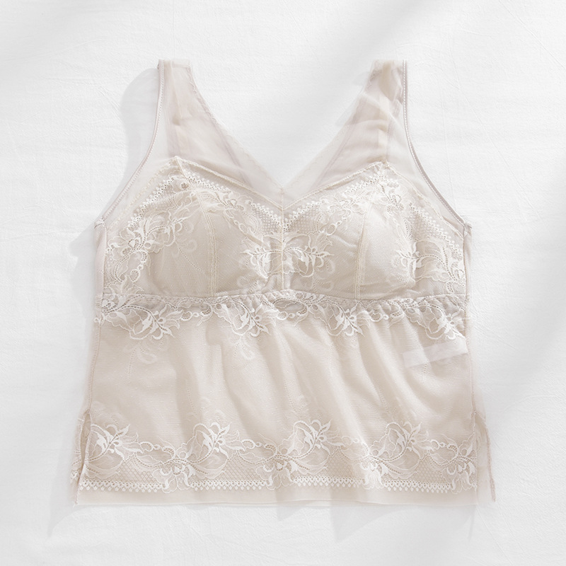 春新款法式蕾丝内衣女士固定一体杯美背吊带胸垫背心内搭打底裹胸
