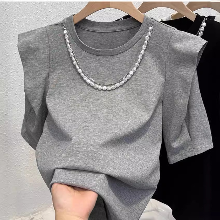 欧洲站欧货短袖T恤女夏小众设计时髦洋气纯棉体恤高级感潮牌