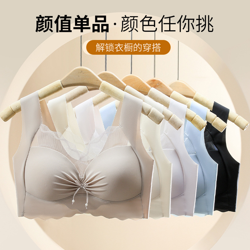 蕾丝美背无痕背心式内衣聚拢收副乳上托文胸罩无钢圈固定杯背心女