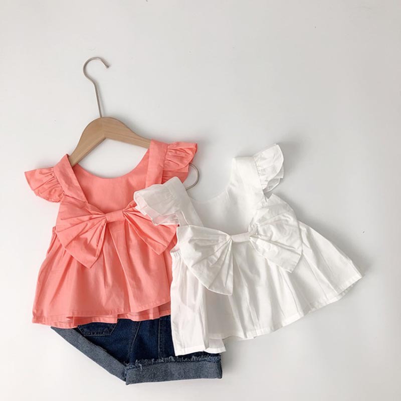 夏季女童背心宝宝洋气儿童个性潮韩版飞袖露背蝴蝶结甜美外穿上衣