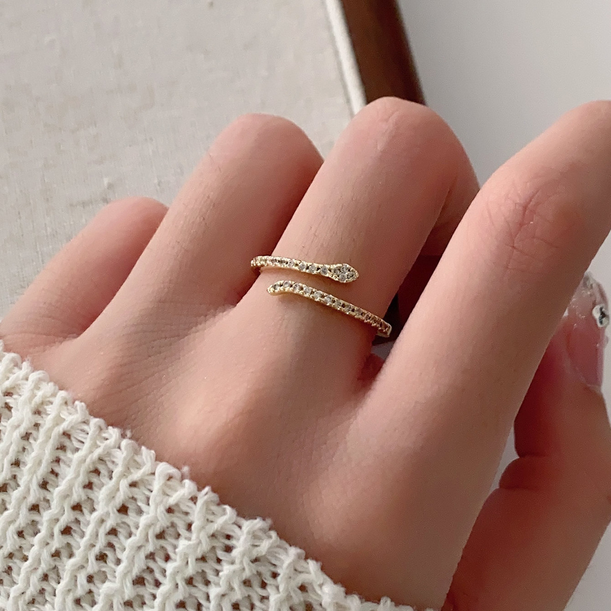 蛇形开口戒指微镶钻高级感设计指环韩国时尚轻奢精致可调节尾戒女
