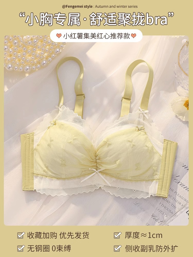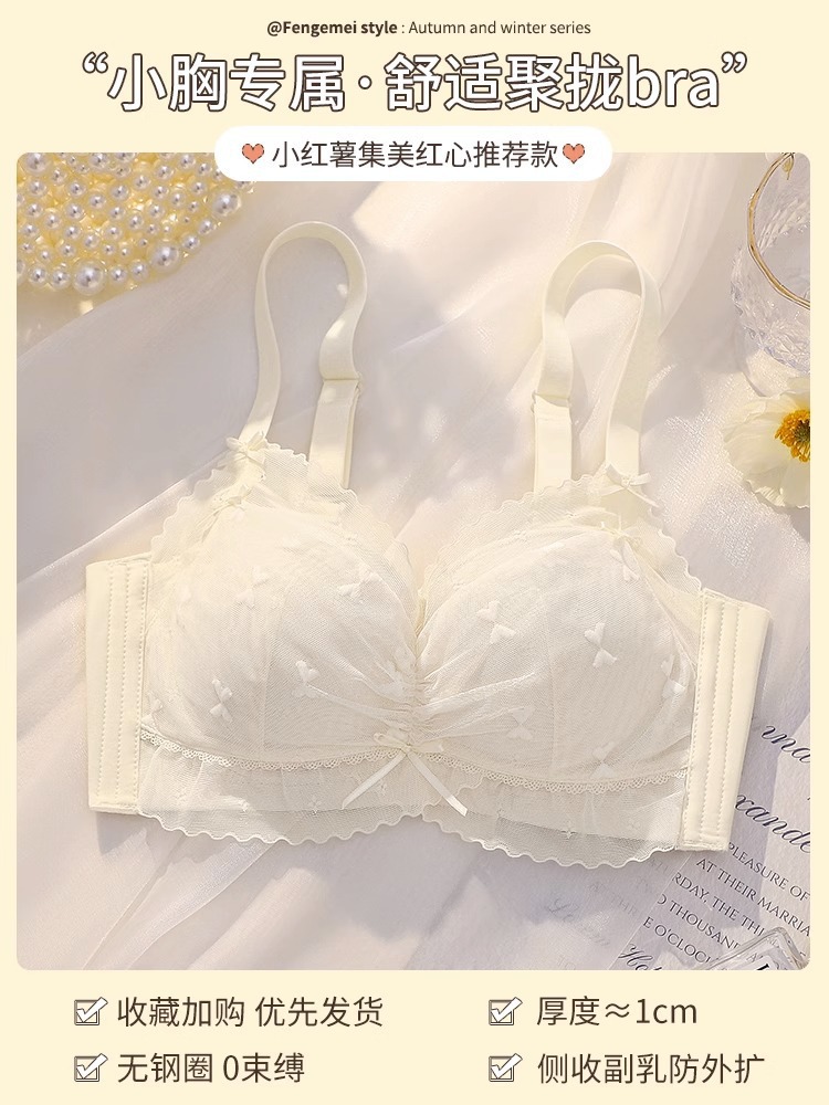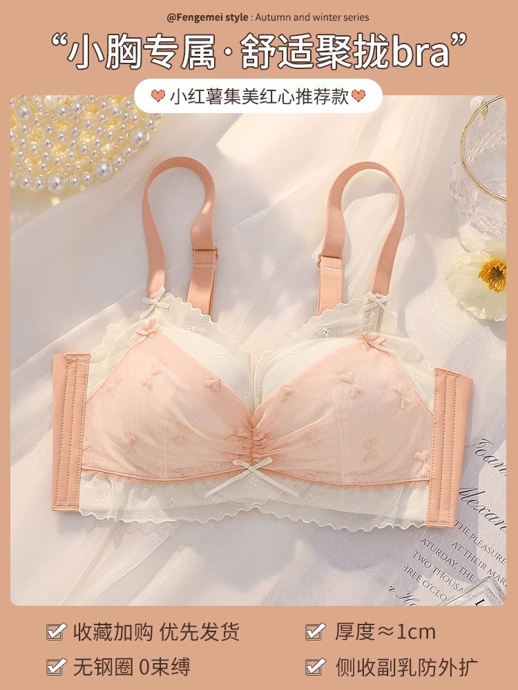 纯欲风蕾丝网纱面料透气性感甜美文胸小胸聚拢上托侧收无钢圈内衣