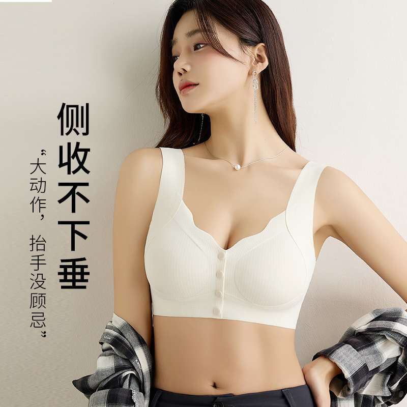 爆款前开扣提拉无痕内衣大码胖MM薄款小胸聚拢无钢圈背心式文胸女