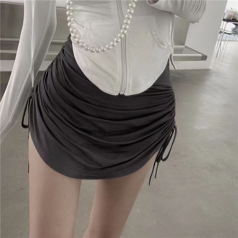 【月销10万】性感辣妹高腰褶皱遮肉裙裤防走光抽绳超短裙包臀裙
