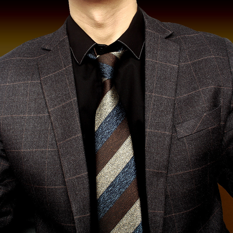 休闲时尚正装商务职业条纹男士领带8cm手打款咖啡棕色1200针涤丝
