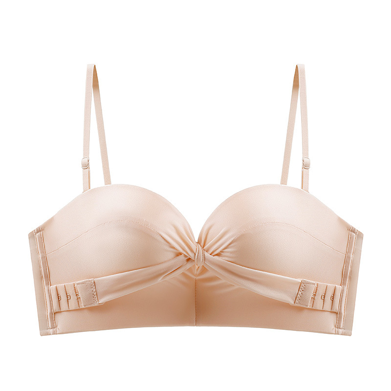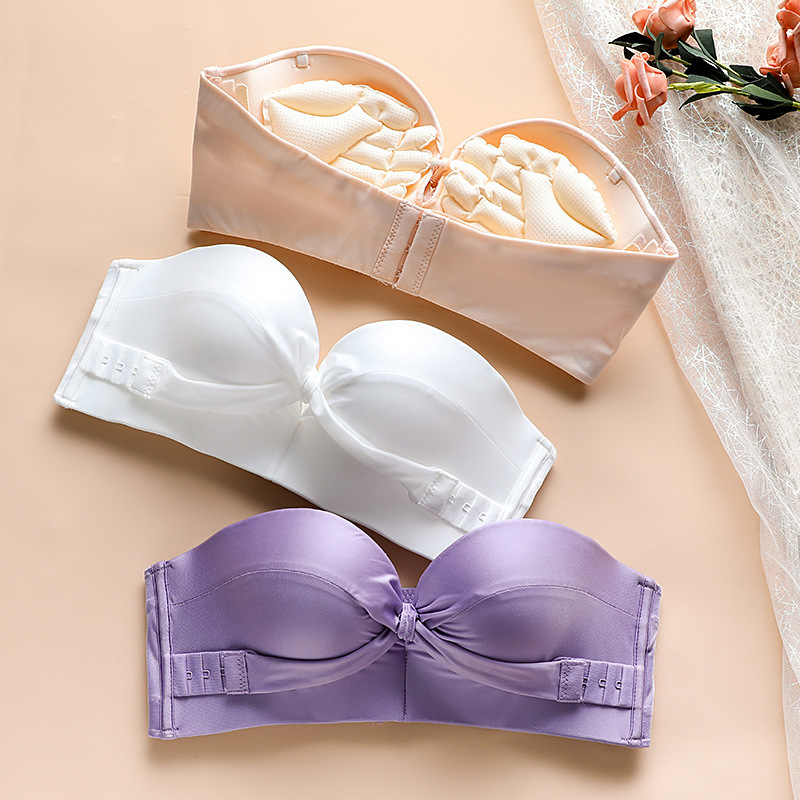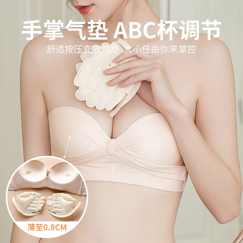 无钢圈充气内衣前拉聚拢隐形文胸女隐形防滑美背一字肩一片式文胸