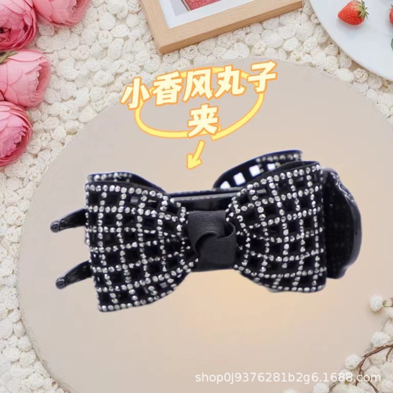 蝴蝶结发夹马尾优雅丸子发饰阑秋新款小香风网格蝴蝶丸子头发夹