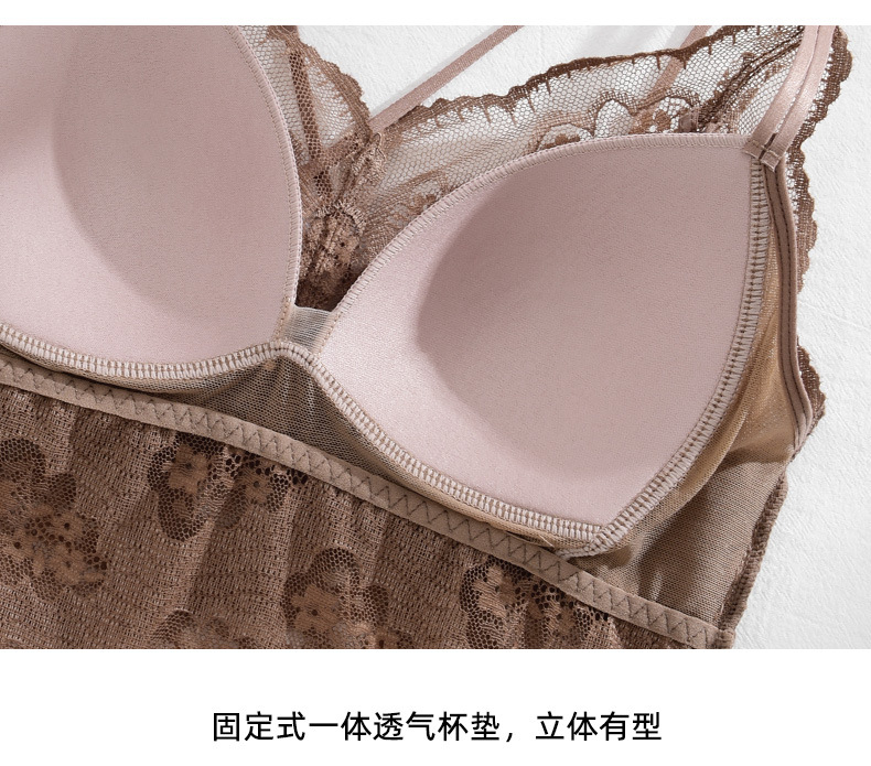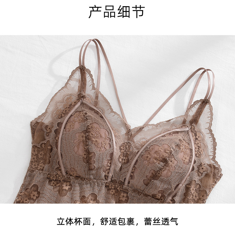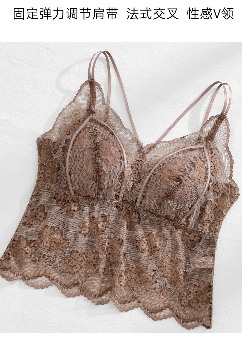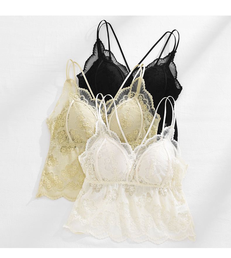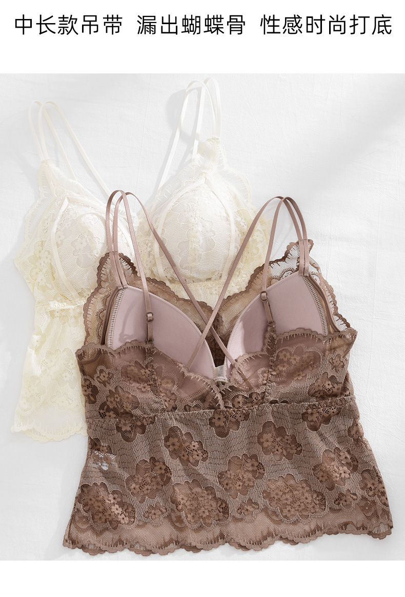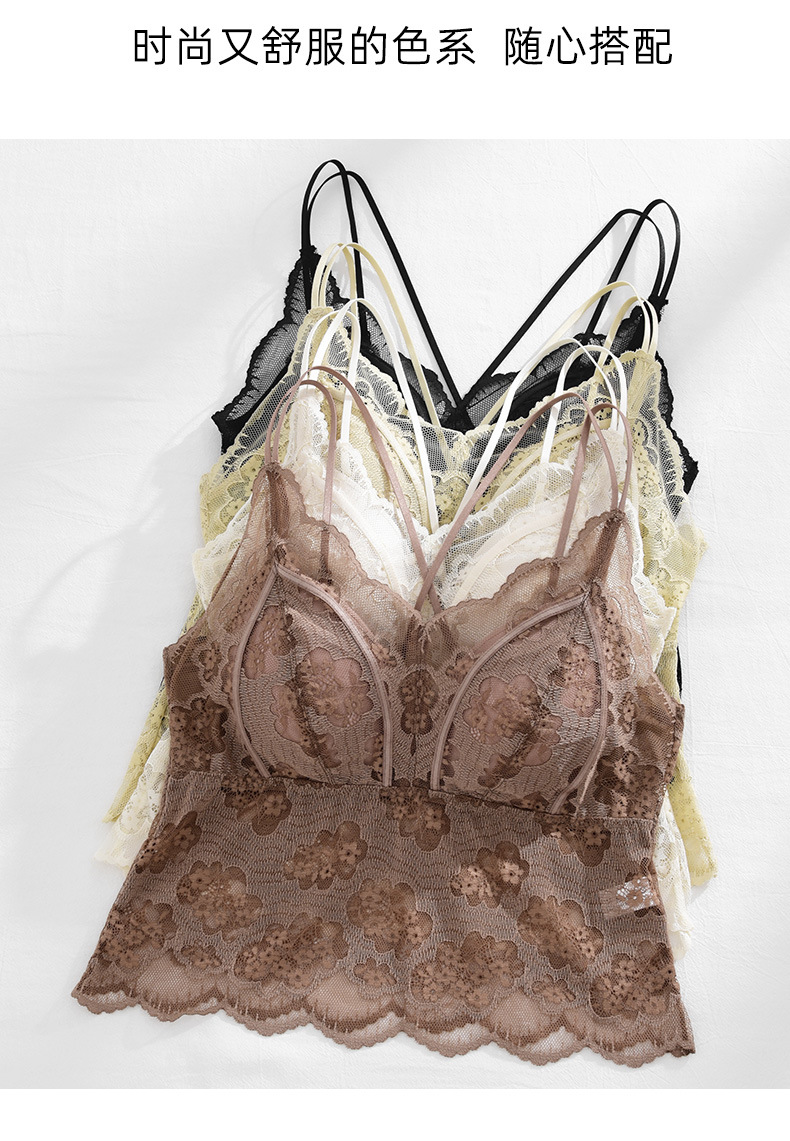 春新款法式蕾丝内衣女士无钢圈美背文胸吊带胸垫内搭背心打底裹胸