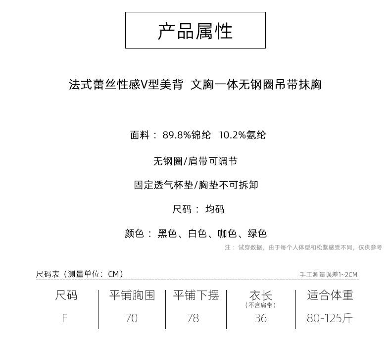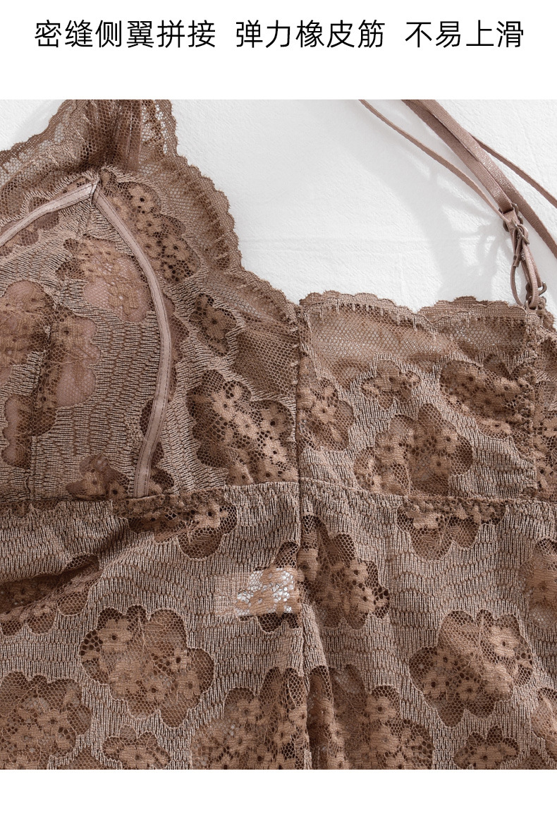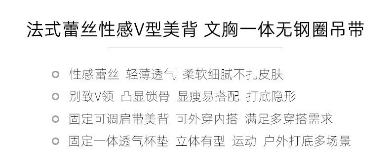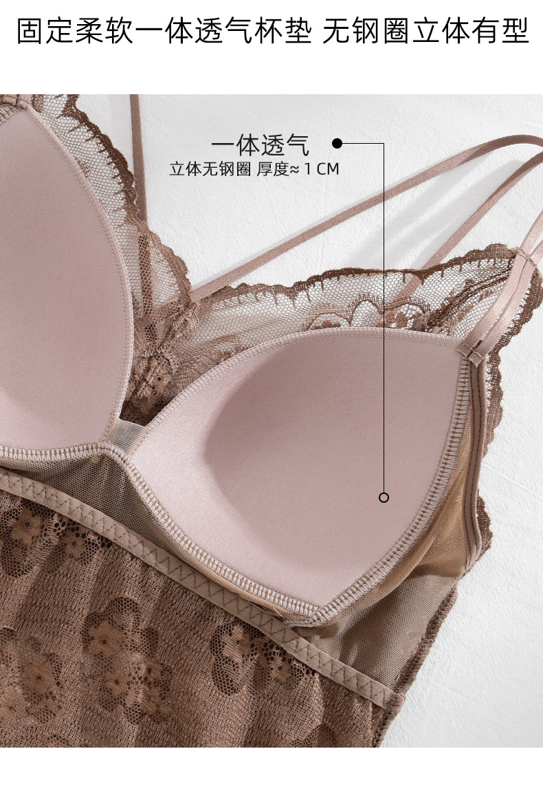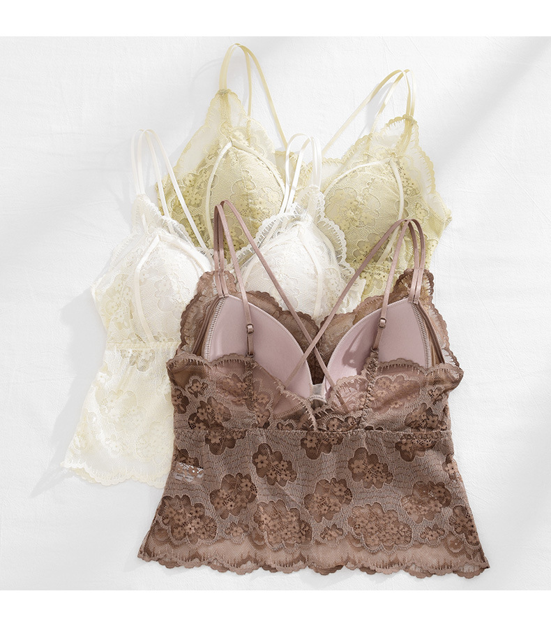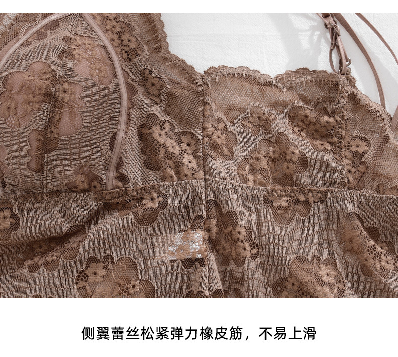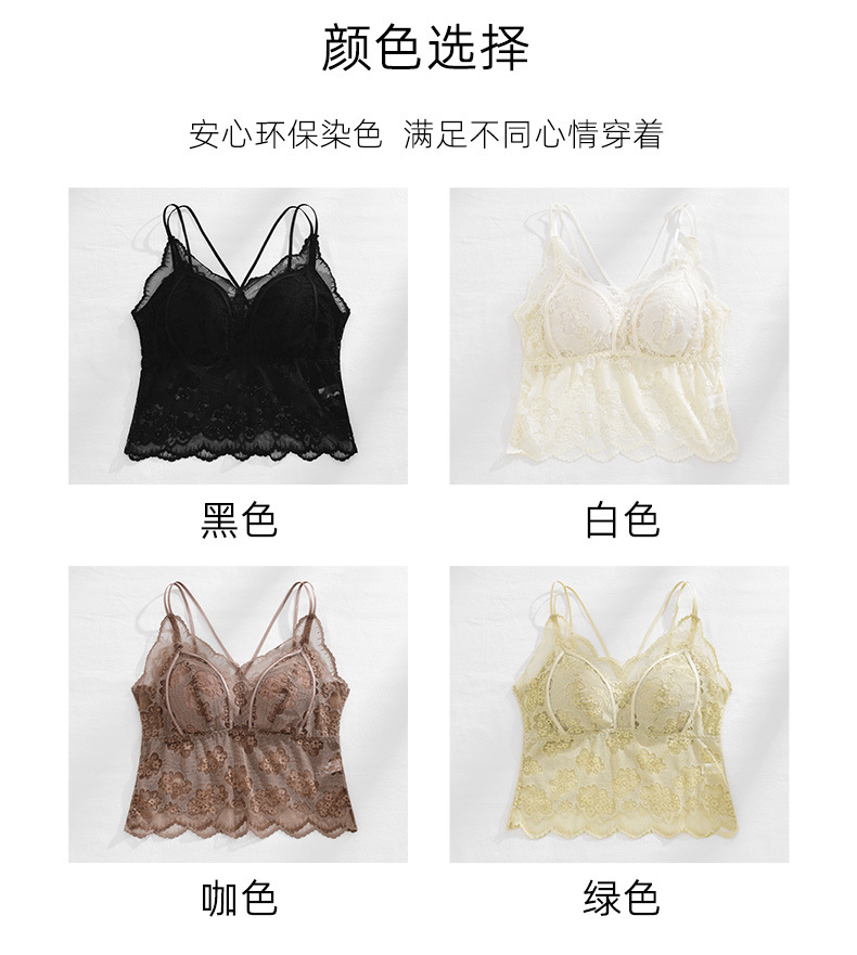 春新款法式蕾丝内衣女士无钢圈美背文胸吊带胸垫内搭背心打底裹胸