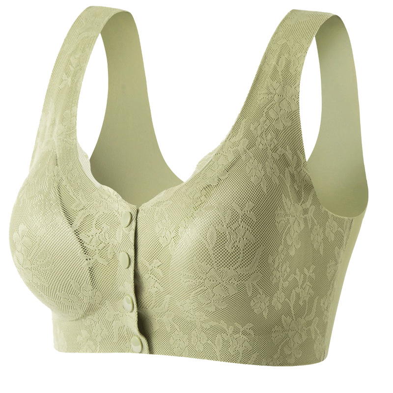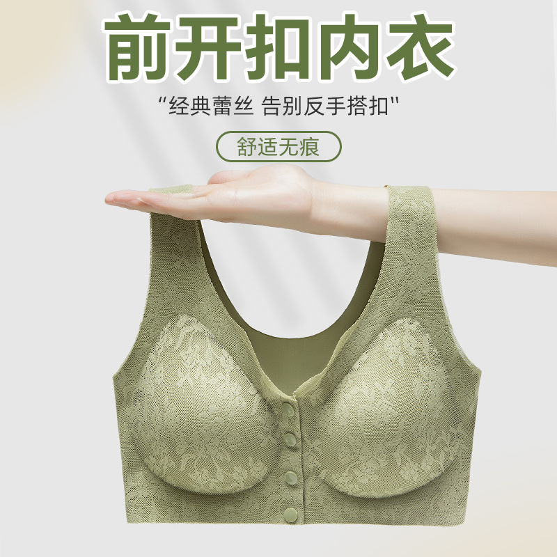 中老年人前开扣妈妈内衣无痕美背大码无钢圈聚拢蕾丝中老年文胸