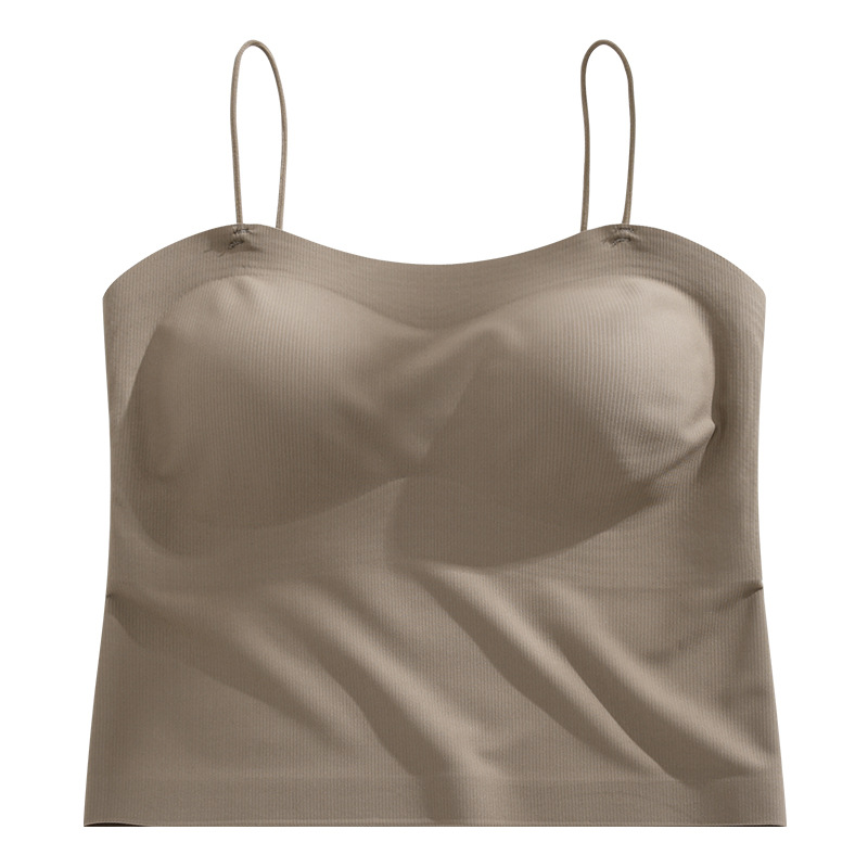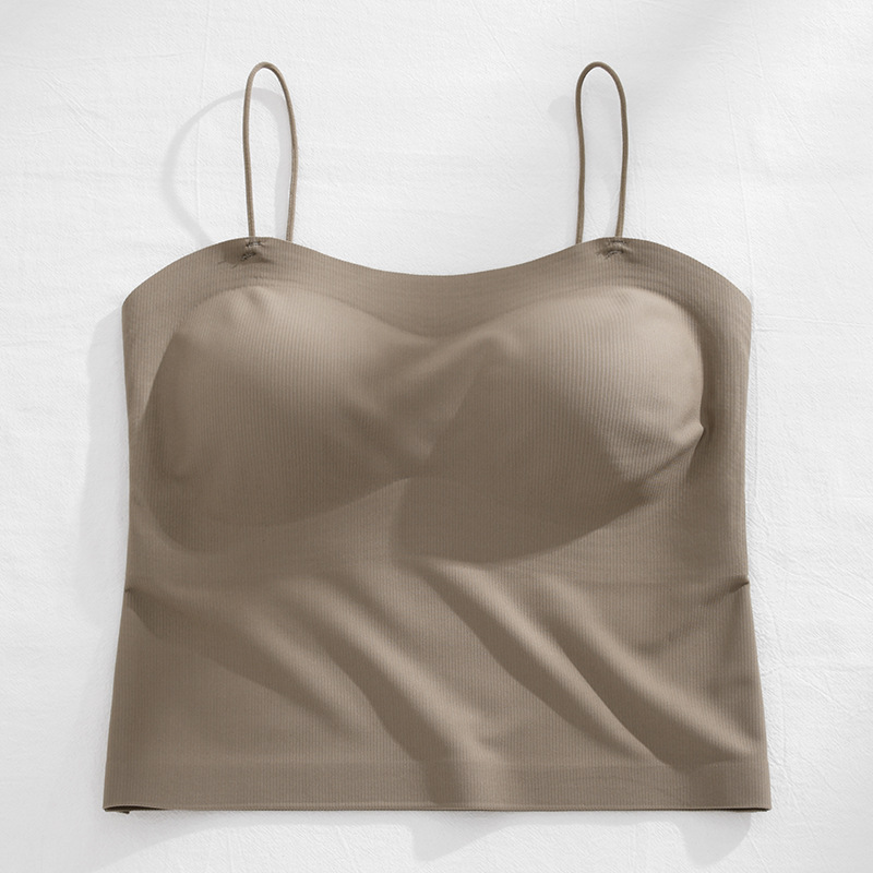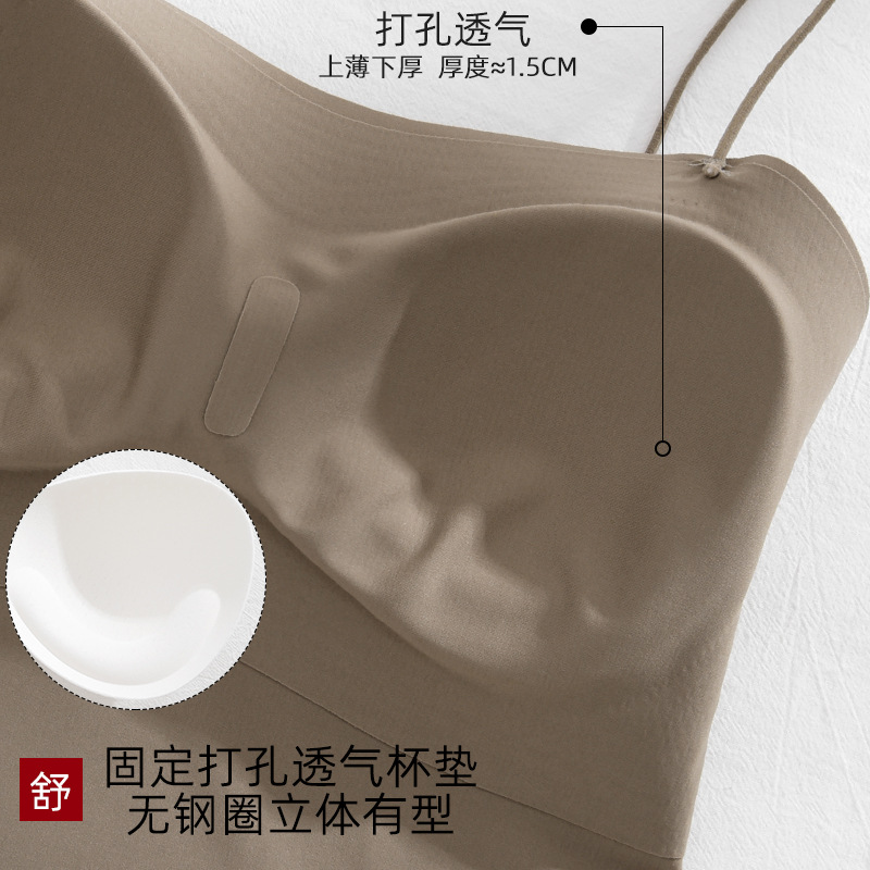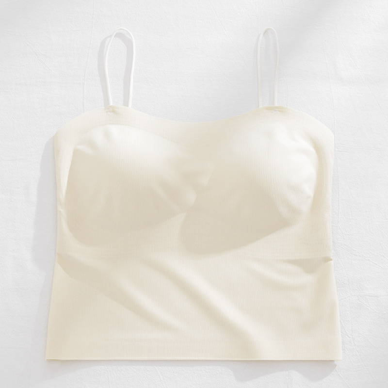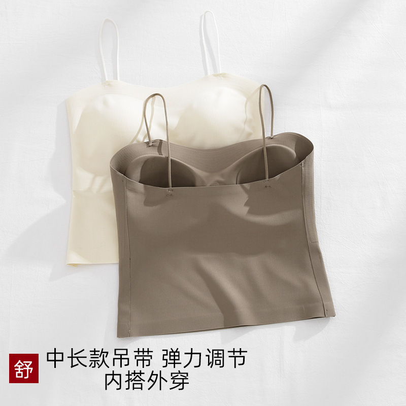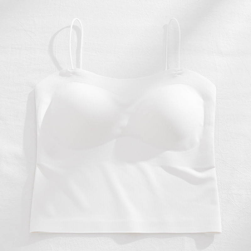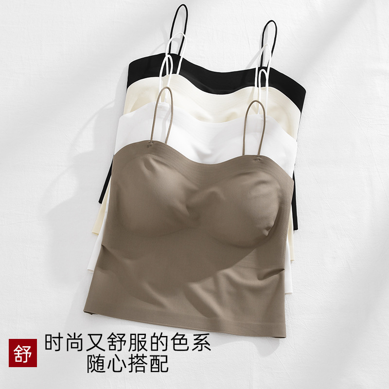 春新款冰丝无痕内衣女士文胸无钢圈带胸垫内搭一体杯打底吊带背心