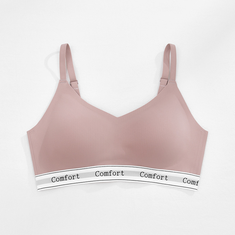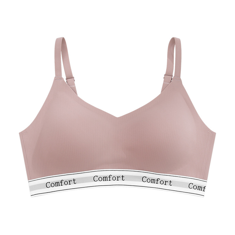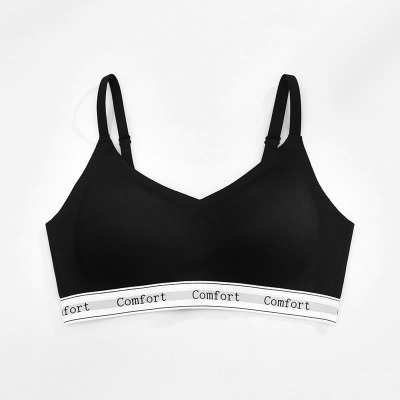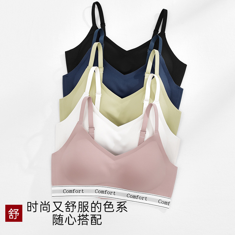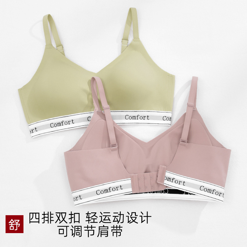 新款撞色字母无痕内衣女士文胸无钢圈小胸聚拢轻运动瑜伽简约胸罩
