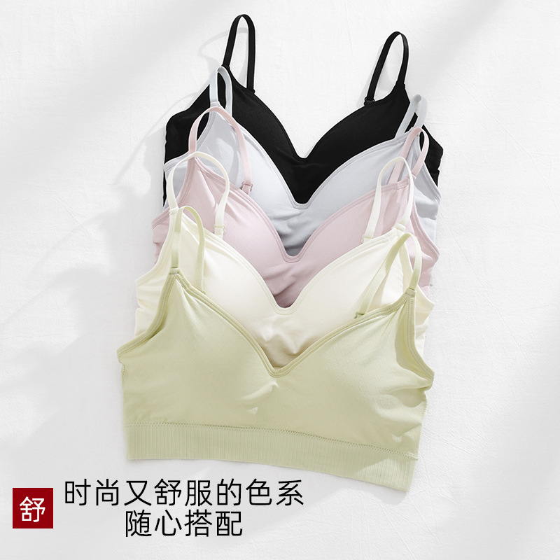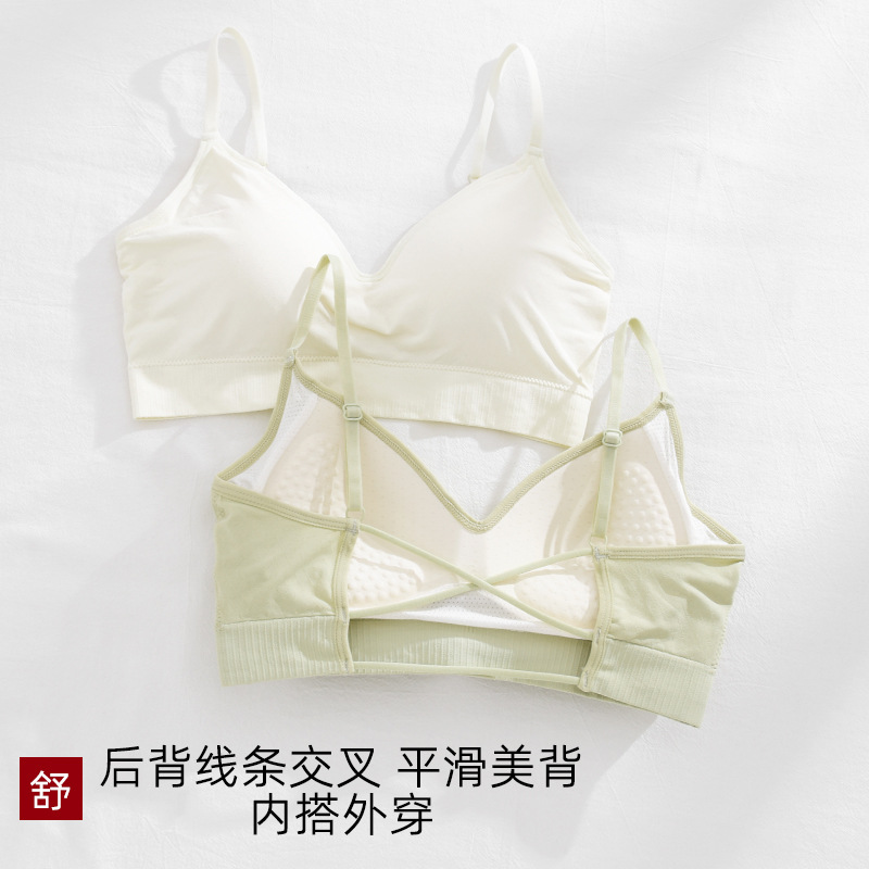 春新款交叉美背文胸内衣女士小胸不空杯无钢圈带胸垫内搭打底裹胸