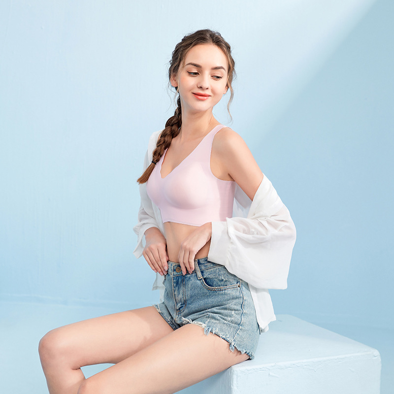 斯柏丽高弹贴身无尺码乳胶内衣女无痕无钢圈背心式运动文胸罩