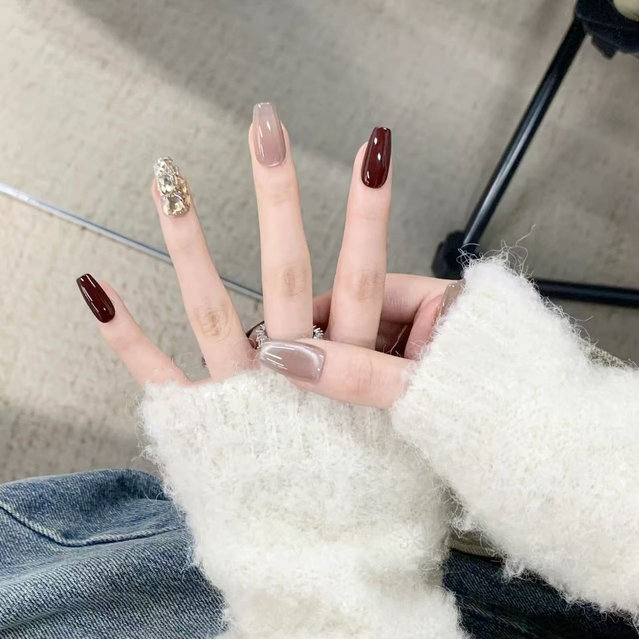手工穿戴甲秋冬新年美拉德猫眼爆闪甲片高级感显白学生纯欲风美甲