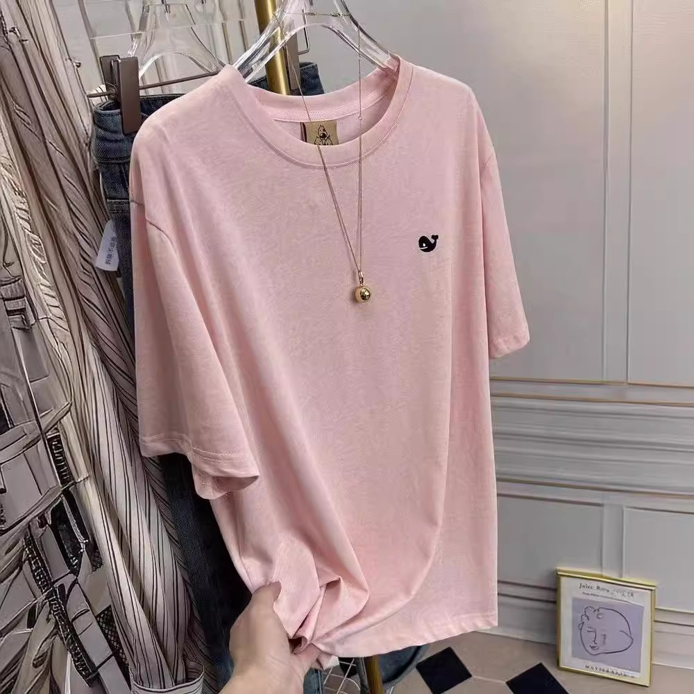 高档柔软清凉刺绣图案短袖T恤上衣女新款宽松百搭休闲半袖潮