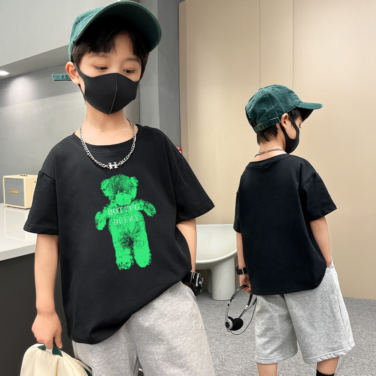 实拍男童短袖棉质t恤夏季卡通印花休闲儿童潮宽松帅气中大童上衣