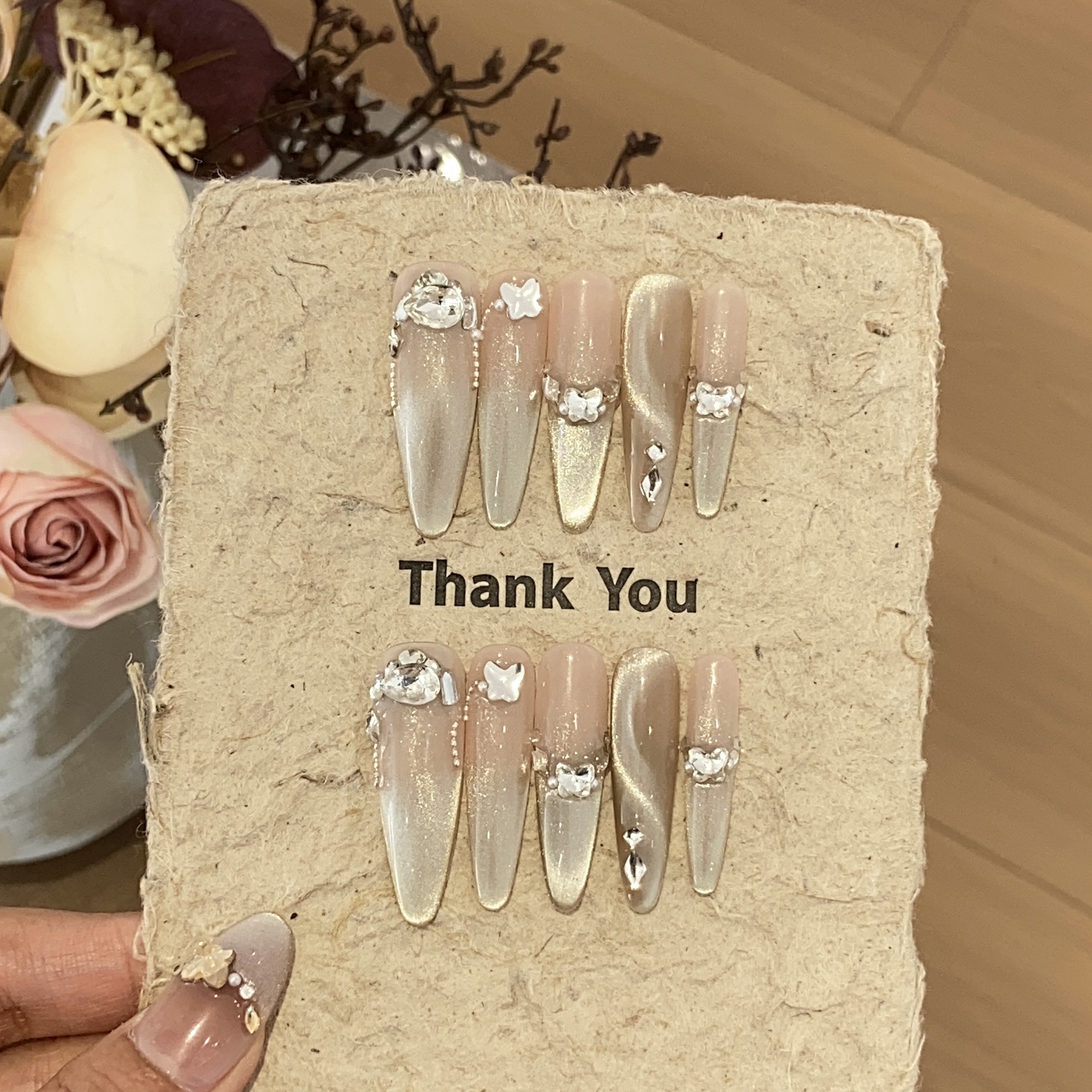 纯手工穿戴甲秋冬猫眼透亮气质棕褐色高级感氛围小众美甲贴片成品