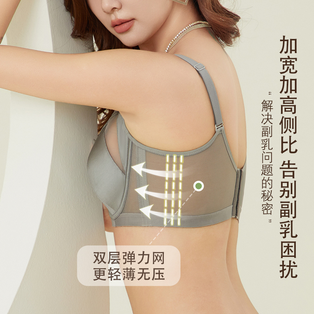 6987大码法式性感内衣女大胸显小聚拢调整型收副乳防下垂文胸真丝