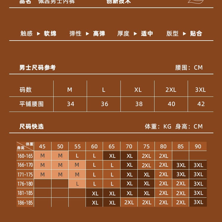40支冰瓷棉男士内裤舒适中腰5A抗菌透气男士平角裤